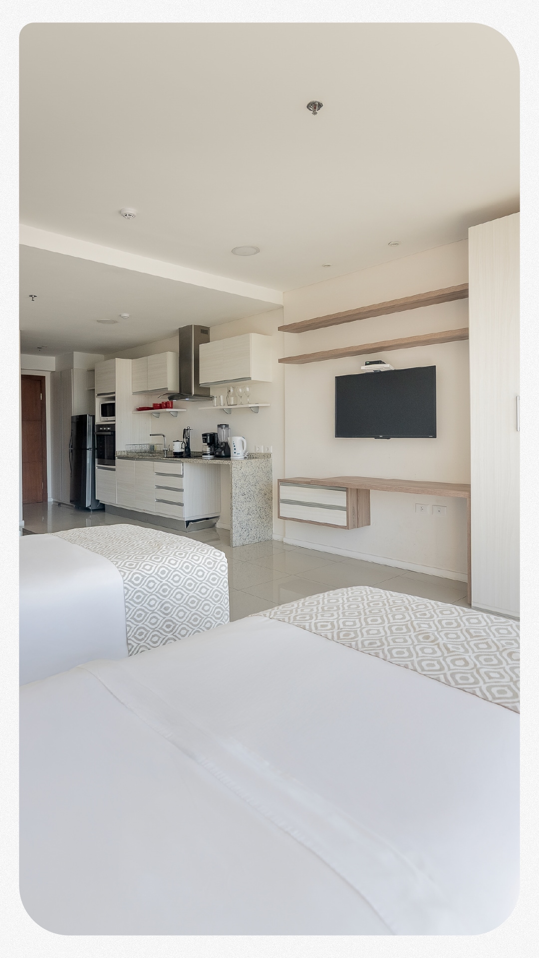 Αυτό το κομψό κατάλυμα είναι ιδανικό για μεμονωμένα ταξίδια ή για ζευγάρια με έως και δύο παιδιά. Βρίσκεται κοντά στον νέο εταιρικό άξονα της Ασουνσιόν, με γρήγορη πρόσβαση σε σουπερμάρκετ, σχολεία και πάρκα. Απέχει μόλις 10 λεπτά από το αεροδρόμιο και 5 λεπτά από το νέο επιχειρηματικό κέντρο της Ασουνσιόν. Διαθέτει πισίνα και ψησταριά (με επιπλέον κόστος) στη βεράντα του κτιρίου. Θυρωρός κατά τη διάρκεια της ημέρας και 24ωρη ασφάλεια.
