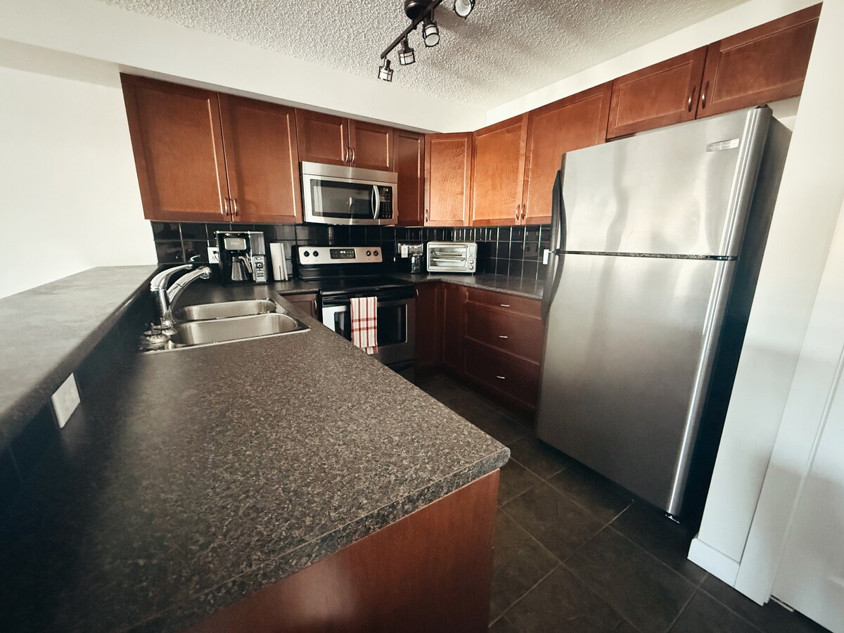 Αποδράστε στο δεύτερο σπίτι σας με αυτό το διαμέρισμα δίπλα στην παραλία James Chabot. Απέχει 2 λεπτά με το αυτοκίνητο από το γήπεδο γκολφ Eagle Ranch και το κέντρο της πόλης και 15 λεπτά με το αυτοκίνητο από το Radium Hot Springs. Ανοιχτή κουζίνα, τραπεζαρία και καθιστικό με τηλεόραση επίπεδης οθόνης 55". Απολαύστε τον καφέ και τα γεύματά σας στο ιδιωτικό μπαλκόνι. Το κύριο υπνοδωμάτιο διαθέτει ένα εξατομικευμένο ρουστίκ κρεβάτι queen size, μια ντουλάπα και ένα πλήρες ιδιωτικό μπάνιο. Το δεύτερο υπνοδωμάτιο έχει ένα ρουστίκ διπλό κρεβάτι. Περιλαμβάνεται πισίνα (εποχιακή), 2 υδρομασάζ και γυμναστήριο.
