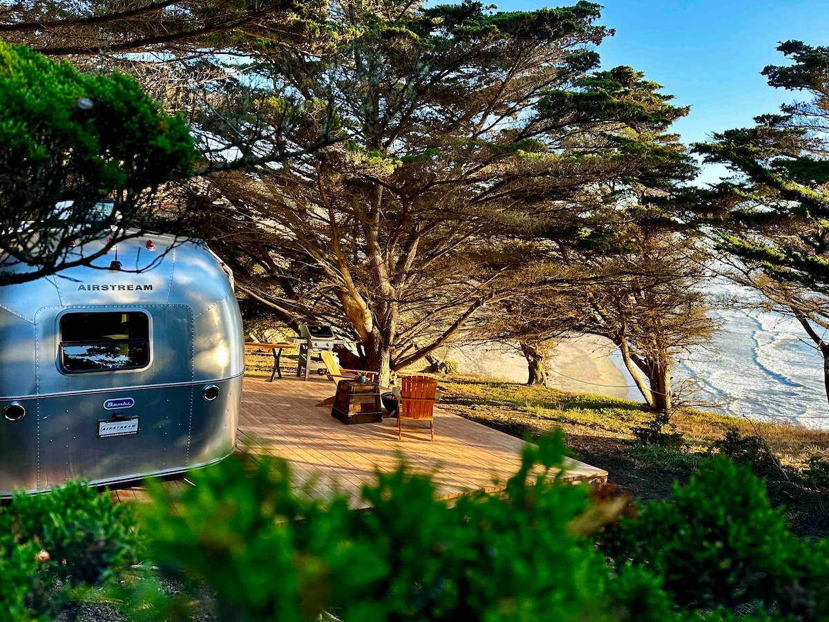 On 9 private acres overlooking the stunning Beach and Ocean from a breathtaking cliff top view. Stunning sunsets. Famous surf views with large windows. Fully loaded with all the amenities to make your glamping experience perfect. Fire pit, outside BBQ, outside griddle, Heat, A/C and fully stocked kitchen. Full bathroom with shower. Within 10 mins of Half Moon Bay shopping. Beach access short walk or drive. If this one is booked, there are three other equally similar Airstreams on the property.