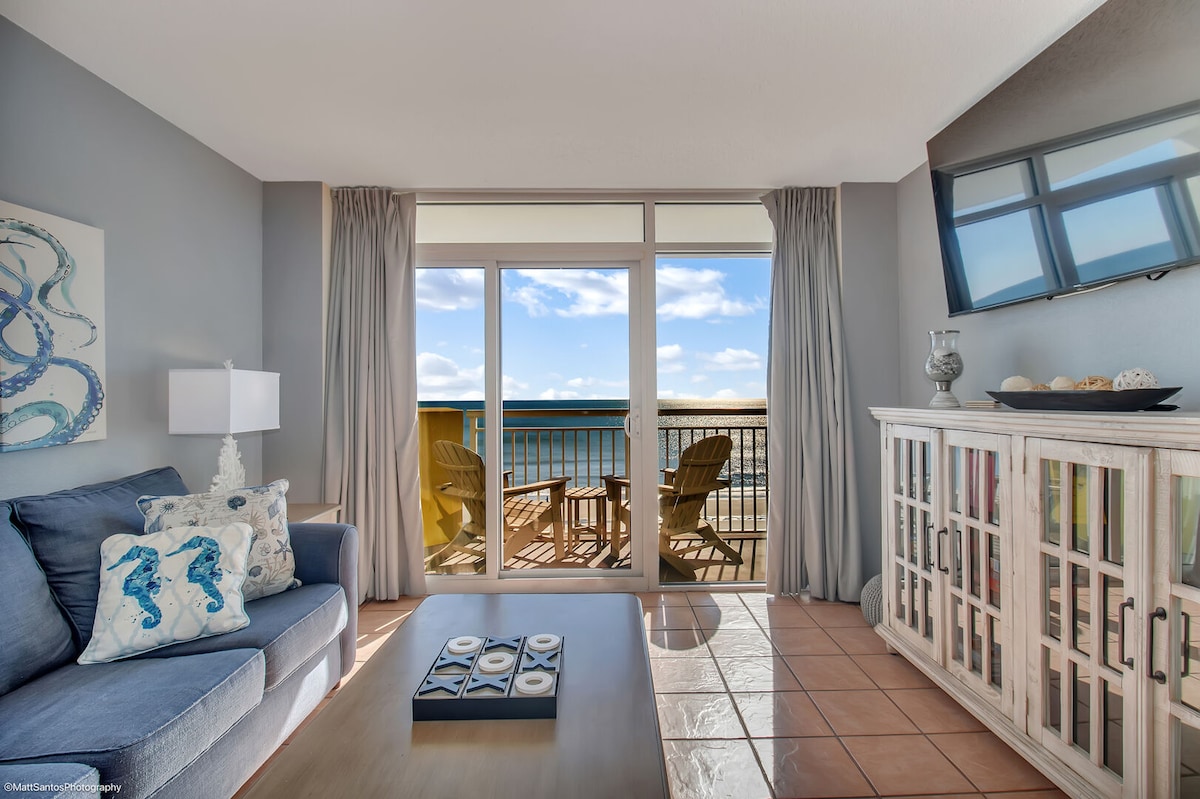 Direct Oceanfront Balcony Unit 16th floor. Πρέπει να είστε άνω των 23 ετών για να νοικιάσετε ανά Ένωση Ιδιοκτητών Ακινήτων. Νέα είσοδος χωρίς κλειδί. Μονάδα υπνοδωματίου με υπέρδιπλο κρεβάτι 6. 2 ξαπλώστρες παραλίας και ομπρέλα για χρήση από τους επισκέπτες. Υπέρδιπλο κρεβάτι και επιλογή φουτόν (παιδί), διπλό Murphy & καναπές-κρεβάτι, αναβαθμισμένα στρώματα. Συσκευές πλήρους μεγέθους. PoolsideTiki bar, εστιατόρια, τεμπέλικα ποτάμια εσωτερικού/εξωτερικού χώρου, υδρομασάζ, πισίνες, παιδικές πισίνες και χαρακτηριστικά νερού. Δωρεάν πάρκινγκ, ίντερνετ, Fire stick και δυνατότητα σύνδεσης σε υπηρεσία streaming.