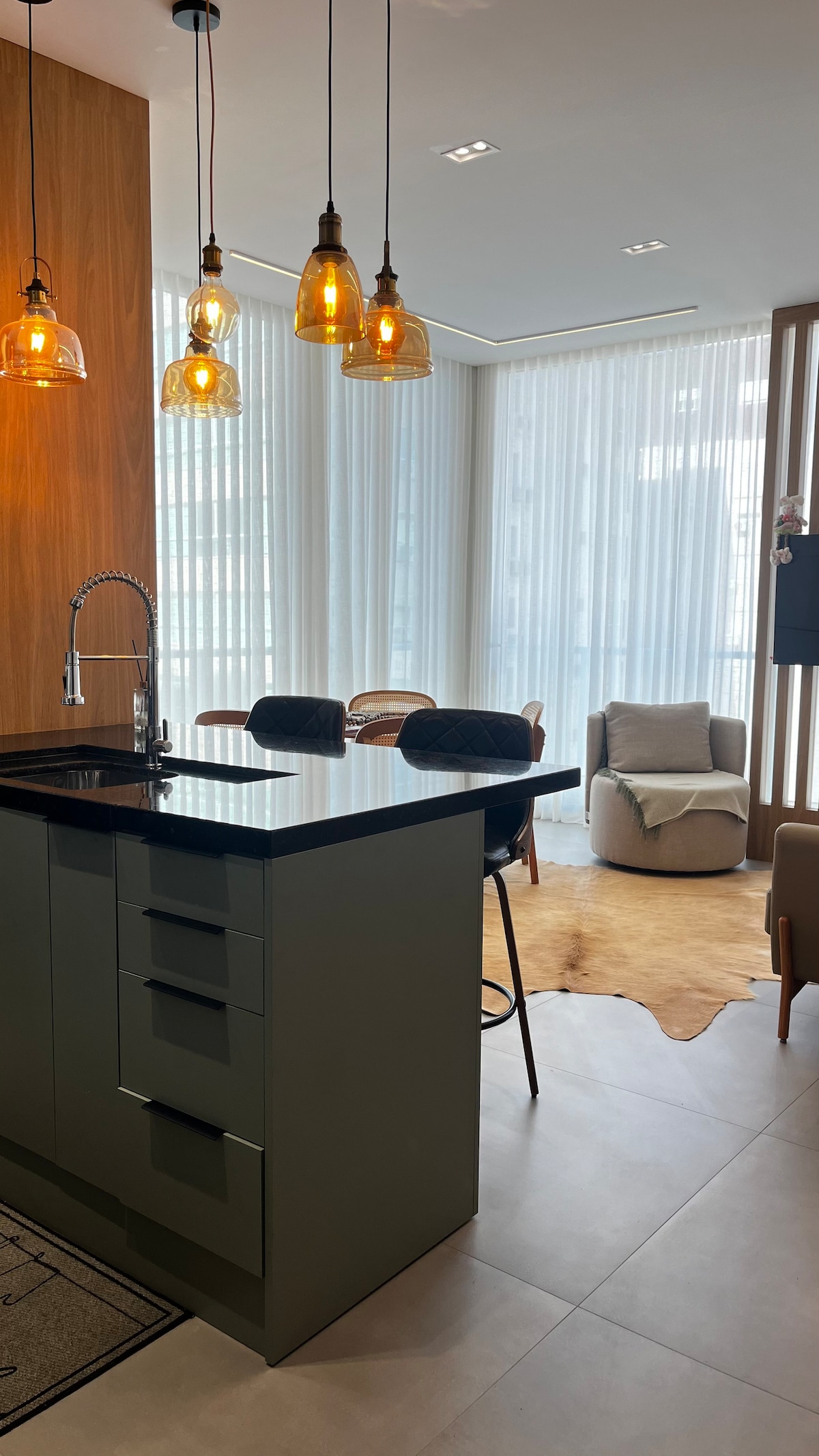 Φαγητό με όλη την οικογένεια σε αυτόν τον κομψό χώρο. Το διαμέρισμα διαθέτει δύο υπνοδωμάτια και είναι σουίτα. Υπάρχει κλιματισμός και στα δύο και επίσης στο σαλόνι/κουζίνα. Διαθέτει πλήρως εξοπλισμένη κουζίνα, έξυπνη τηλεόραση, wifi, πλυντήριο ρούχων και στεγνωτήριο, ασανσέρ, καλυμμένο γκαράζ, ξαπλώστρες παραλίας, καθώς και την υποδομή του συγκροτήματος κατοικιών με πισίνα. Ελάτε να μείνετε μαζί μας και να απολαύσετε ό, τι καλύτερο έχει να προσφέρει το καλοκαίρι gaucho!!!