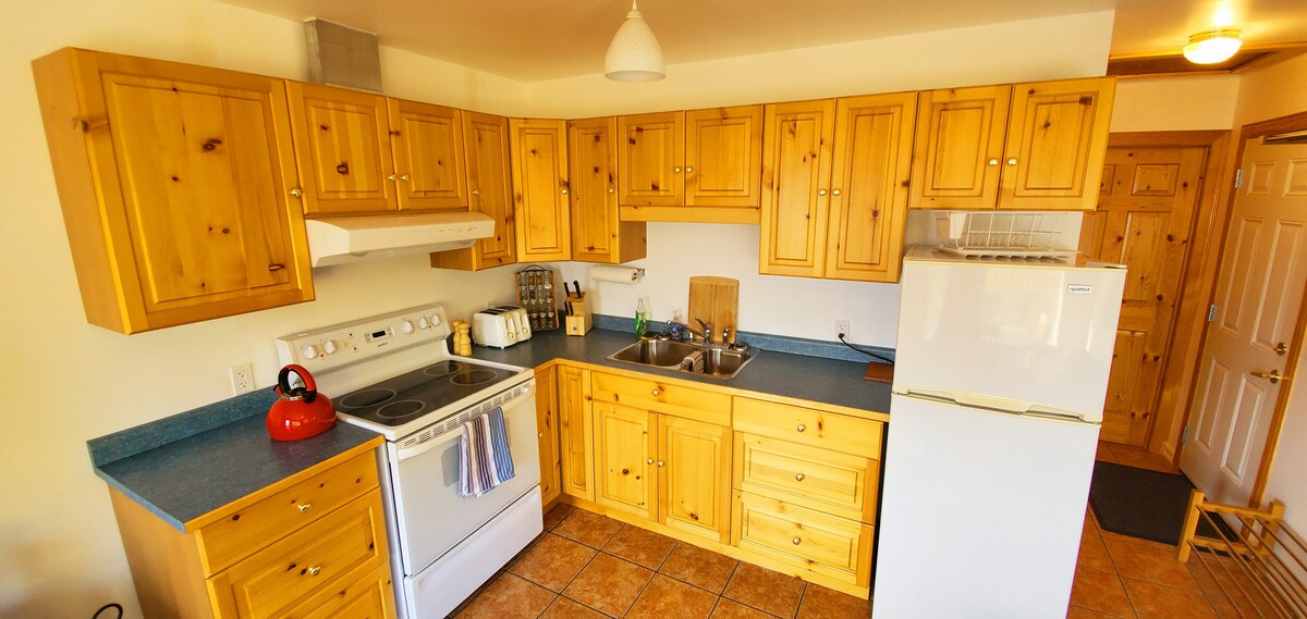 Discover Atlin Lake's beauty from our cozy one-bedroom loft on Monarch Mountain, minutes from downtown Atlin, BC. Enjoy direct access to Monarch Mountain Trail. This retreat features a full kitchen, spacious bathroom, sauna, and free Wi-Fi. House-trained dogs are welcome for $25 per night. We offer two identical apartments, A and B, sharing a large deck with stunning views. Each hosts up to four guests but is ideal for two. For added privacy, ask about the other apartment's availability.