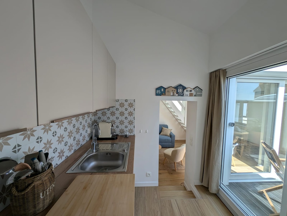 Χαλαρώστε σε αυτή τη σοφίτα που βρίσκεται πάνω από το σπίτι μας με ανεξάρτητη πρόσβαση, 200 μέτρα από την παραλία. Το κατάλυμα περιλαμβάνει: - έναν χώρο διαβίωσης: γωνιακή κουζίνα, σαλόνι, καναπές-κρεβάτι, κρεβάτι 90 εκατοστών - Ένα υπνοδωμάτιο με κρεβάτι 140 εκατοστών, ντουλάπα και συρταριέρα, τηλεόραση (βρεφικό κρεβάτι κατόπιν αιτήματος) - Ένα μπάνιο με μπανιέρα-ντους, τουαλέτα - Μια βεράντα ύψους 20 τ.μ. Ένα πραγματικό κουκούλι όπου όλα είναι σχεδιασμένα για να έχετε μια ευχάριστη διαμονή.