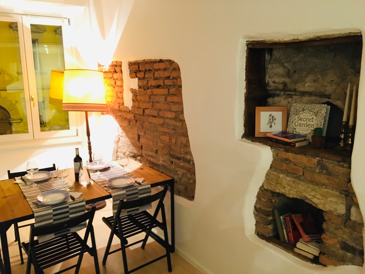 Στην καρδιά του ιστορικού κέντρου, κοντά στην Piazza Fiera και την Piazza Duomo, στον πρώτο όροφο ενός ιστορικού κτιρίου με ασανσέρ. Διαμέρισμα 62 τ.μ. που ανακαινίστηκε πρόσφατα. Μπάνιο με ντους και πλυντήριο ρούχων. Πάγκος κουζίνας με πλυντήριο πιάτων, φούρνο, καφετιέρα, μηχανή καφέ, επαγωγική εστία. Σαλόνι με διπλό καναπέ-κρεβάτι, SmartTv και Wifi. Υπνοδωμάτιο με διπλό κρεβάτι. Κοντά σε σιδηροδρομικό/λεωφορειακό σταθμό, μουσεία και χριστουγεννιάτικες αγορές. Υπάρχει χώρος για ποδήλατα μέσα στο κτίριο.