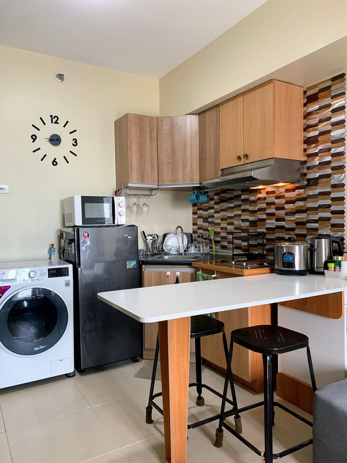 Απολαύστε μια κομψή εμπειρία σε αυτόν τον χώρο που βρίσκεται σε κεντρική τοποθεσία. Χαλαρώστε σε αυτό το εντελώς άνετο, μοντέρνο και ζωντανό διαμέρισμα που βρίσκεται σε βολική τοποθεσία κοντά στο Διεθνές Αεροδρόμιο Mactan. Εκεί είναι κοντά σε όλα, όπως εστιατόρια, καφετέριες, καταστήματα πλυντηρίων, εμπορικά κέντρα και σούπερ μάρκετ. - 3-5 λεπτά από το αεροδρόμιο Mactan - Internet υψηλής ταχύτητας έως 200 Mbps. - Τηλεόραση 65 ιντσών με δωρεάν Netflix. - 1 υπνοδωμάτιο με 1 διπλό κρεβάτι & 1 πτυσσόμενο διπλό κρεβάτι - Πλυντήριο ρούχων. - Πλήρως εξοπλισμένη κουζίνα.