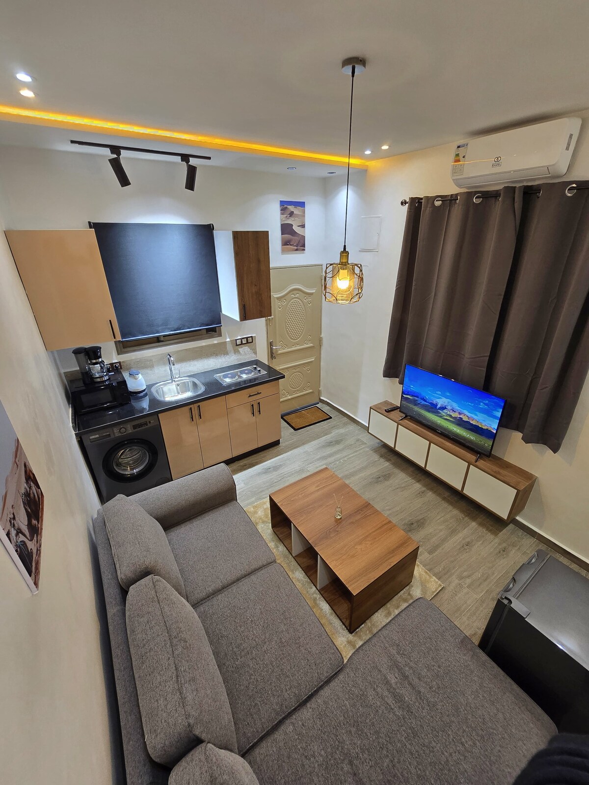 Το διαμέρισμα βρίσκεται 13 χλμ. από το Αγκαντίρ, στο χωριό Αουρίρ. Κλίμα: αέναη άνοιξη Το διαμέρισμα περιλαμβάνει ένα άνετο υπνοδωμάτιο, με ένα διπλό κρεβάτι, ένα γραφείο, μια ντουλάπα. Πλήρως εξοπλισμένη κουζίνα και μοντέρνο μπάνιο. Στο σαλόνι υπάρχουν τρεις άνετες καναπέδες και μια τηλεόραση uhd Το μπαλκόνι είναι ανοιχτό στη θάλασσα, με το θαλασσινό αεράκι και τα χαλαρωτικά κύματα να σας περιμένουν Διατίθεται Wifi Ftth 200 Mbps Η ηλιοφάνεια είναι μέγιστη χάρη στα τζάμια των μπαλκονιών