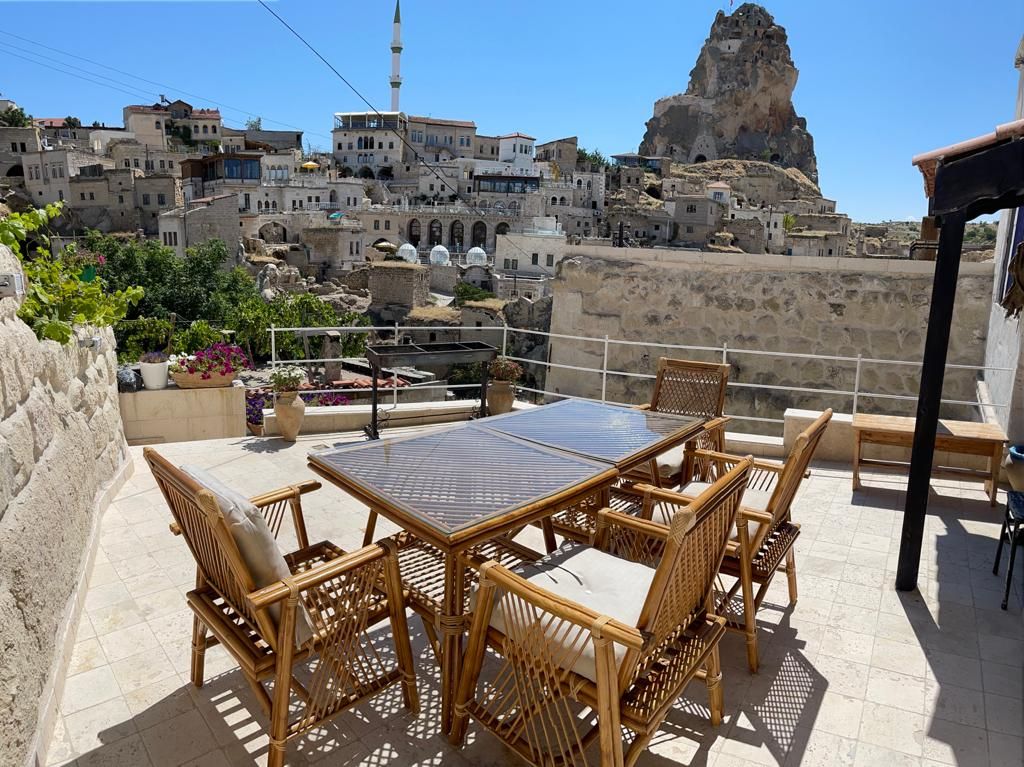 this recently renovated traditional Cappadocian house has three cave rooms with ensuite bathrooms opening to the patio, it has floor heating and great views over the valley and the old town, it's five minutes walk away from Balkan valley which is considered as one of the most beautiful valleys of Cappadocia.