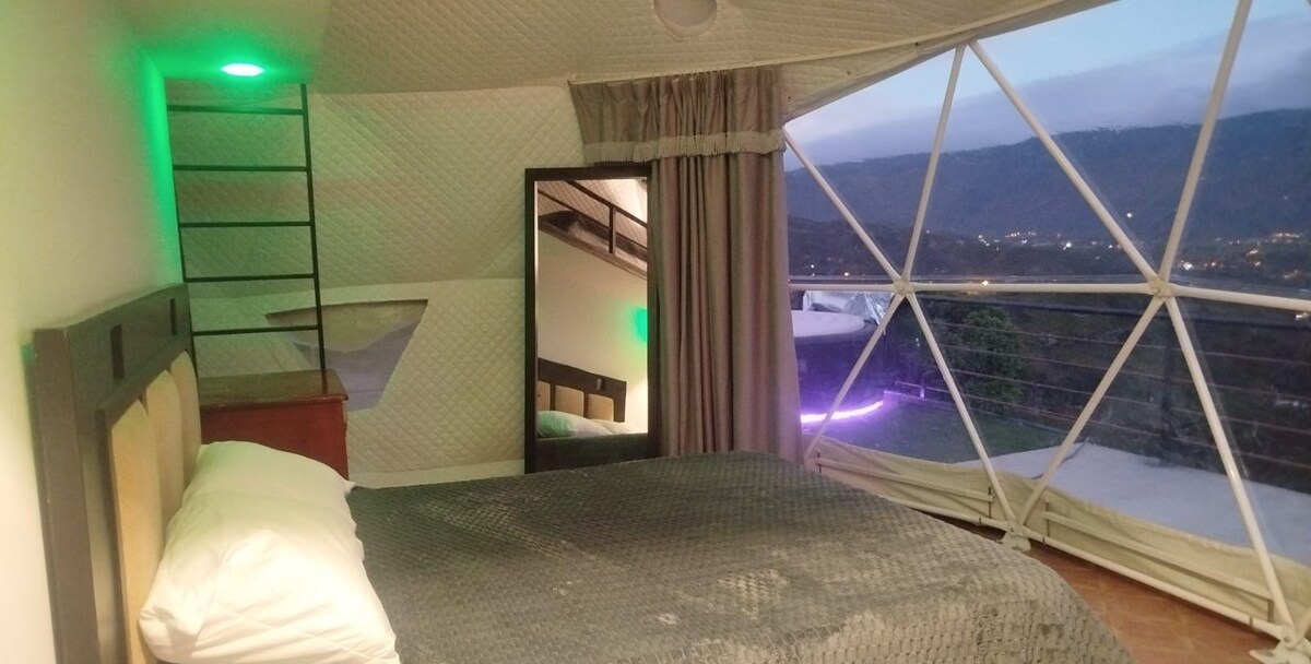 Ζήστε την εμπειρία της διαμονής σε έναν γεωδαιτικό θόλο που περιβάλλεται από τη φύση, ιδανικό για αποσύνδεση και χαλάρωση. Απολαύστε ένα ιδιωτικό τζακούζι, ιδανικό για να χαλαρώσετε κάτω από τα αστέρια. Ιδανικό για ρομαντικές αποδράσεις, ταξίδια για ζευγάρια ή μικρές οικογένειες. Αν έρθουν σε ομάδα, προσφέρουμε επιπλέον σκηνές έξω. Μόλις λίγα λεπτά από το Cerro Pallcurco, ιδανικό για πεζοπορία ή ποδηλασία.