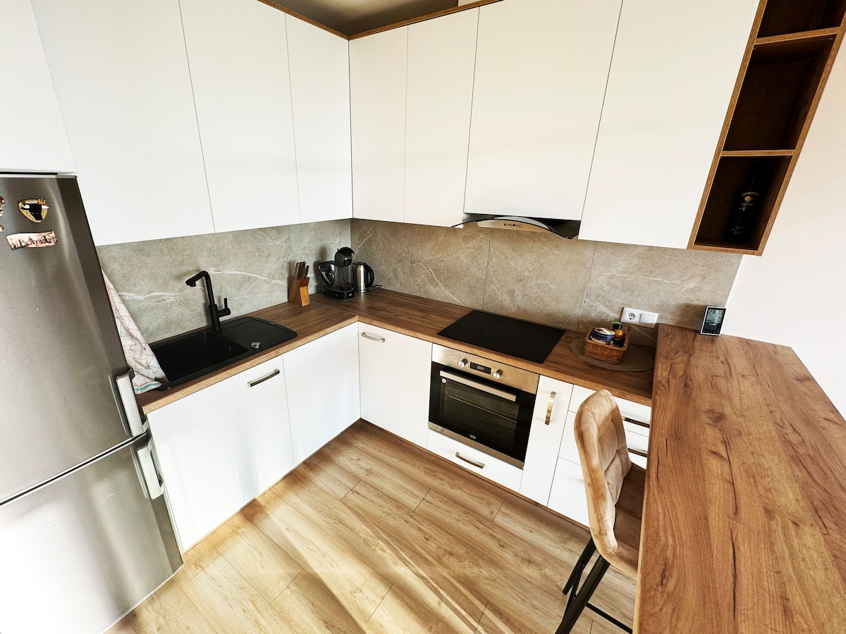 Πρόσφατα ανακαινισμένο, κομψό και άνετο στούντιο 85 τ.μ. σε μια ήσυχη καταπράσινη περιοχή της Ρίγας – Bierienitiesi. Ιδανικό για να χαλαρώσετε και να ξεφύγετε από τη βιασύνη της πόλης. Σχεδιασμένο και επιπλωμένο με προσοχή. 20 λεπτά με το λεωφορείο ή 10 λεπτά με ταξί μέχρι την Παλιά Πόλη. Σε κοντινή απόσταση: !genskalns, Torenitiesakalns. Jūrmala – 30 λεπτά με το αυτοκίνητο/τρένο. Αεροδρόμιο – 10 λεπτά. Δείτε τις άλλες καταχωρήσεις μου κάνοντας κλικ στη φωτογραφία μου και με κύλιση προς τα κάτω, στην επιλογή "Προβολή όλων των καταχωρήσεων"
