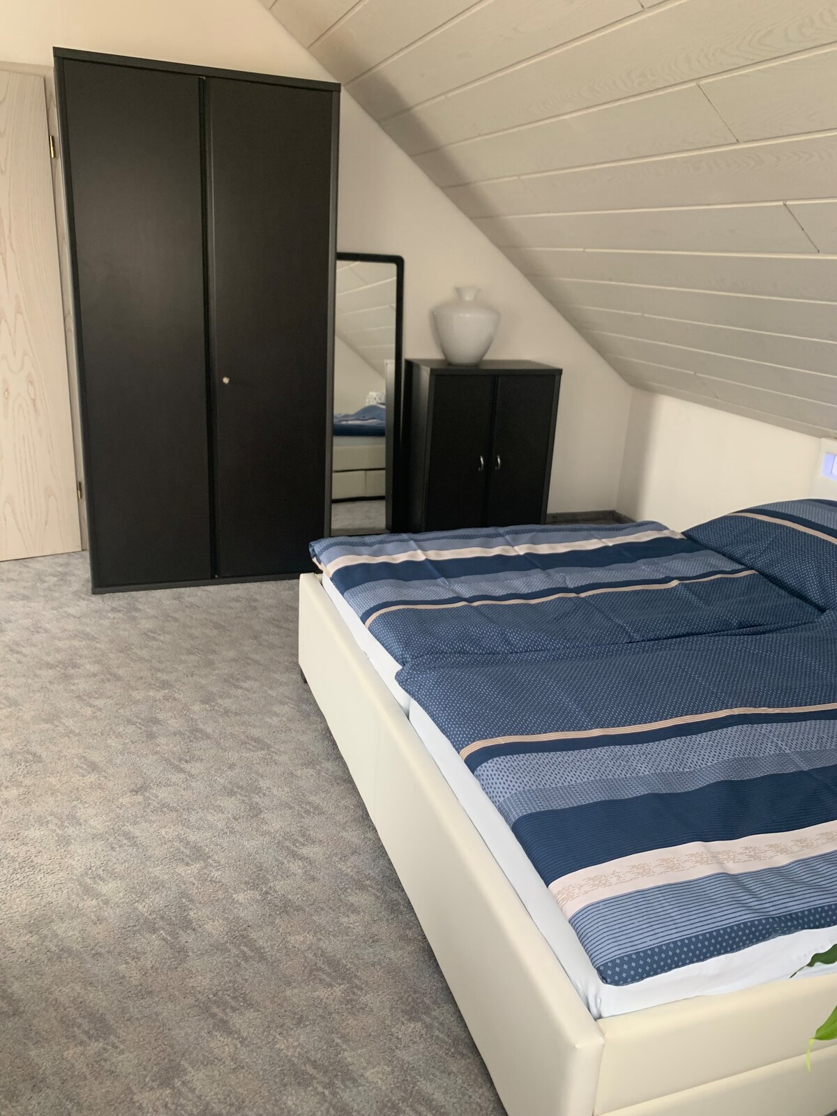 Unsere liebevoll eingerichtete Dachgeschoss-Wohnung - bitte beachte, dass einige Treppen zu bewältigen sind - hat alles, was man für einen kürzeren oder längeren Aufenthalt braucht und wird von Euch allein genutzt. Ruhig am Ende einer Anliegerstraße, nah an Zentrum + S-Bahn. Das Loft punktet u.a. mit überdachten Südwest-Balkon, Klimaanlage, gratis W-LAN, begehbarer Schrank, Waschtrockner, Sauna-Bereich kann nach Absprache genutzt werden, Lademöglichkeit E-Auto. Bei Bedarf weiteres DZ nebenan.