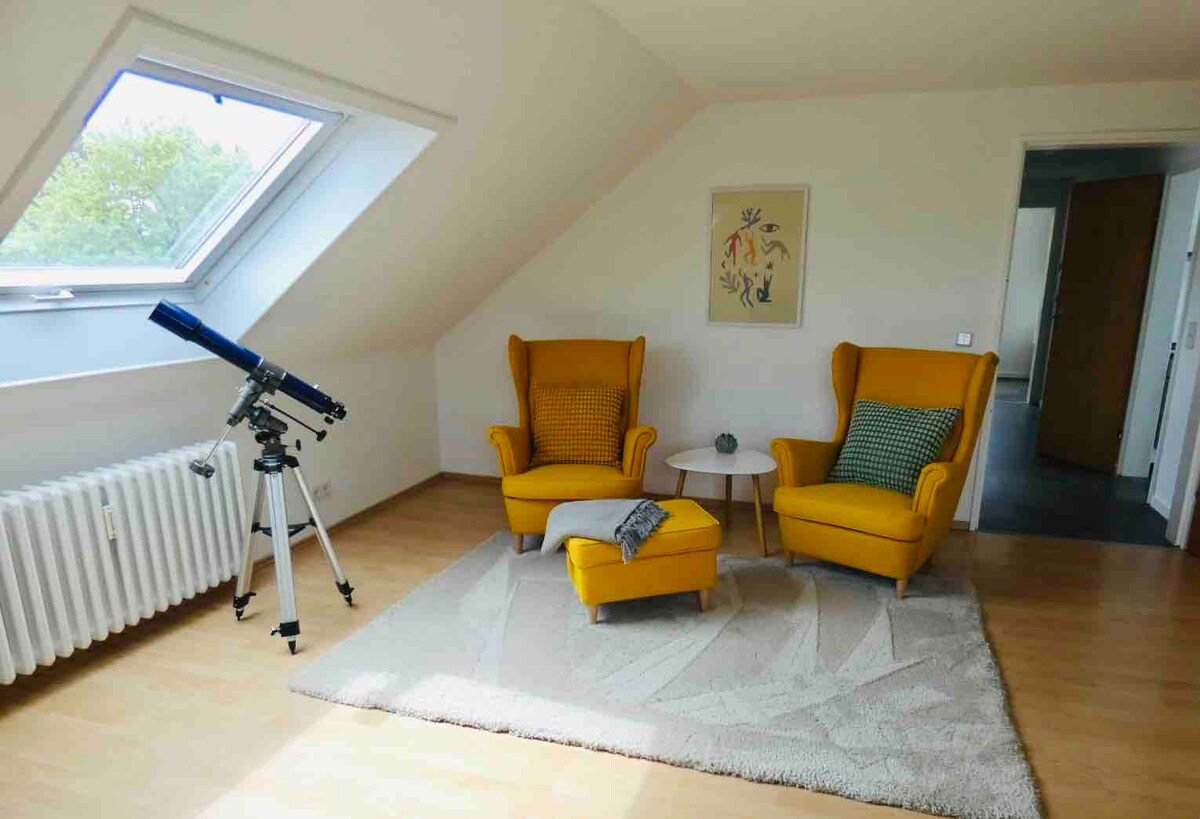 Καλώς ήρθατε στο κομψά σχεδιασμένο "Pool Loft" με μια αποκλειστική αίσθηση διαβίωσης, που βρίσκεται ακριβώς στο δάσος και το Rheinsteig. Εκτός από την ευκαιρία να ξεκουραστείτε, να χαλαρώσετε, να επιβραδύνετε και να νιώσετε καλά σε μια αισθητική ατμόσφαιρα, η σοφίτα 60 τ.μ. προσφέρει την άμεση τοποθεσία στην άκρη του δάσους, η οποία σας προσκαλεί να πάτε για πεζοπορία με εκπληκτική θέα ή απομακρυσμένα μονοπάτια στο Siebengebirge. Επίσης, μπορείτε να απολαύσετε την κουλτούρα της πόλης στη Βόννη ή εκδρομές με βάρκα στον Ρήνο στην Κολωνία ή το Koblenz.