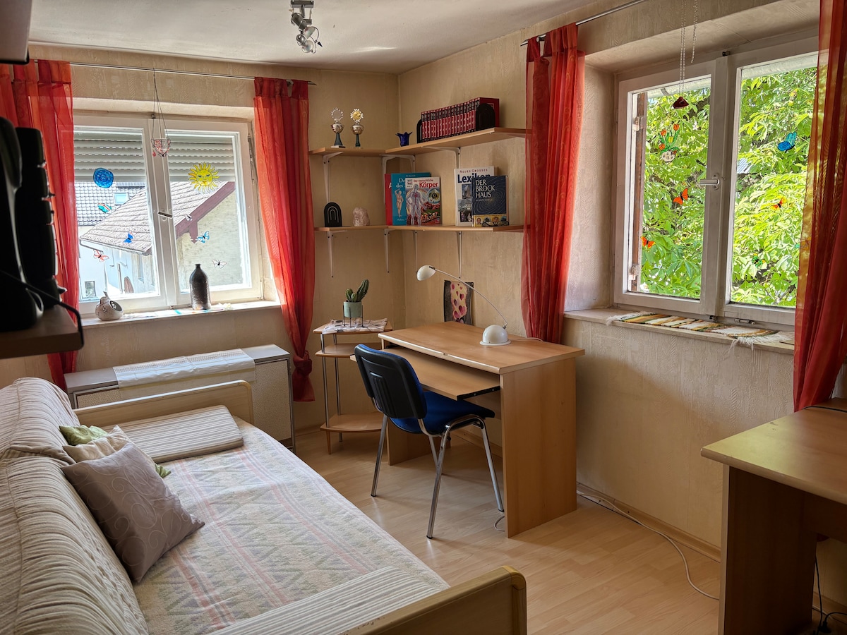 Το διαμέρισμά μας είναι κατάλληλο για γραφείο στο σπίτι. Βρίσκεται σε ήσυχη και ηλιόλουστη τοποθεσία. Η είσοδος είναι ξεχωριστή και οδηγεί στον επάνω όροφο μέσω της σκάλας. Το διαμέρισμα είναι εξοπλισμένο με μικρή κουζίνα, ένα άνετο μονό κρεβάτι (1 x 2 μέτρα) και μια άνετη καθιστική που μπορεί να χρησιμοποιηθεί ως διπλό κρεβάτι, καθώς και τραπεζαρία και τηλεόραση. Το μπάνιο, ως ξεχωριστό δωμάτιο, είναι προσβάσιμο μόνο σε εσάς. Αφετηρία για εκδρομές. Χώρος στάθμευσης, μικρό καθιστικό στον κήπο κάτω από τα δέντρα.