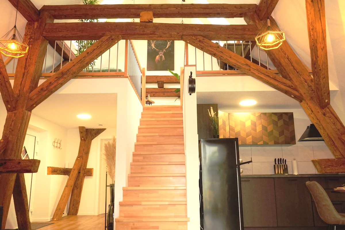 Το EyerHof - που ανήκει στην οικογένεια Eyer εδώ και τρεις γενιές - μια αγροικία άνω των 120 ετών που ανακαινίστηκε πλήρως από το 2019 - 2022 και τώρα συνδυάζει την ιδιαίτερη γοητεία μιας αγροικίας με το μοντέρνο βιομηχανικό στιλ. Δίπλα στη βεράντα, την αυλή και τον κήπο, υπάρχει ένας σταθμός μπάρμπεκιου με μεγάλη νέα ψησταριά αερίου Rösle και τον αχυρώνα που μπορεί να χρησιμοποιηθεί ως ένα άνετο σαλόνι. Το εσωτερικό του σπιτιού συνδυάζει το μισό ξύλινο με το σύγχρονο σίδερο, το ξύλο, τον ψαμμίτη, τους τοίχους από πηλό και το παλιό με το νέο 🖤