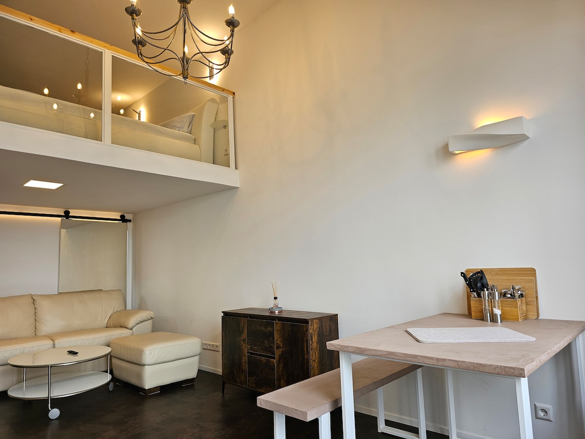 Απολαύστε την απλή ζωή σε αυτό το ήσυχο και κεντρικό κατάλυμα, 10 λεπτά με τα πόδια από τον σιδηροδρομικό σταθμό και 20 λεπτά από το κέντρο της πόλης, 3 λεπτά από το S-Bahn. Το διαμέρισμα είναι μια ανακαινισμένη αποθήκη, προσβάσιμη μέσω μιας απότομης σκάλας. Υπάρχει ένας μικρός χώρος εισόδου στο ισόγειο με ντουλάπα και καθίσματα. Ο επάνω όροφος διαθέτει ένα μικρό σαλόνι/υπνοδωμάτιο με μικρή κουζίνα, καθιστικό και ένα μικρό μπάνιο με ντους.