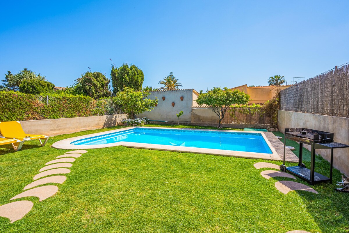 Beautiful holiday home with private pool, 4 bedrooms, 2 bathrooms, air conditioning (hot / cold), WiFi internet, satellite Tv, barbecue terrace and garden, by the sea in Bahia Grande Our modern house is only 400m from the sea. Romantic walks and a Mediterranean feeling are guaranteed here. The Bahia Grande is about 15 km south of the island's capital Palma and is one of the oldest urbanizations on the island and belongs to the municipality of Llucmajor.