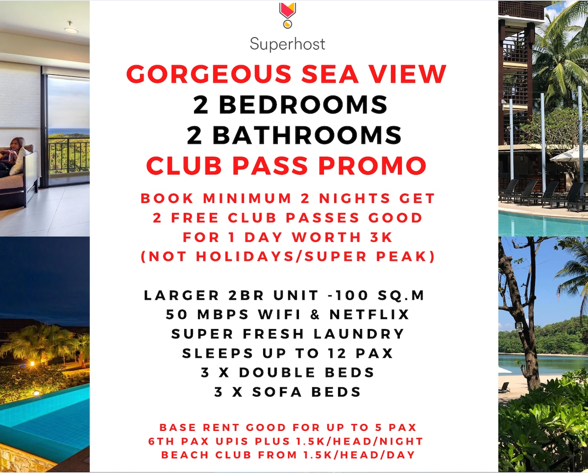 Είμαι Superhost με πάνω από 700 κριτικές ✓ Μένουμε στην Anvaya διασφαλίζοντας ότι η διαμονή σας θα είναι απρόσκοπτη ★ Πολύ καθαρή μονάδα με επαγγελματικό πλυντήριο Επιτρέπεται το★ μαγείρεμα ★ WiFi/Netflix ★ Η βασική τιμή ισχύει για έως και 4 άτομα ★ Επιπλέον άτομο @ 1.5k/head/night Είσοδος στο ★ Beach Club από τη διεύθυνση 1.5k/head/day - πληρώνεται μόνο τις ημέρες που εισέρχεστε στην ομάδα ★ Beach Club που τώρα διαχειρίζεται απευθείας η Ayala Hospitality ★ Νέος επικεφαλής σεφ που εκπαιδεύτηκε στην Enderun ★ Αποτελεί μια εξαιρετική βάση για να εξερευνήσετε επίσης το Zoobic Safari, το Ocean Adventure και το Las Casas Filipinas