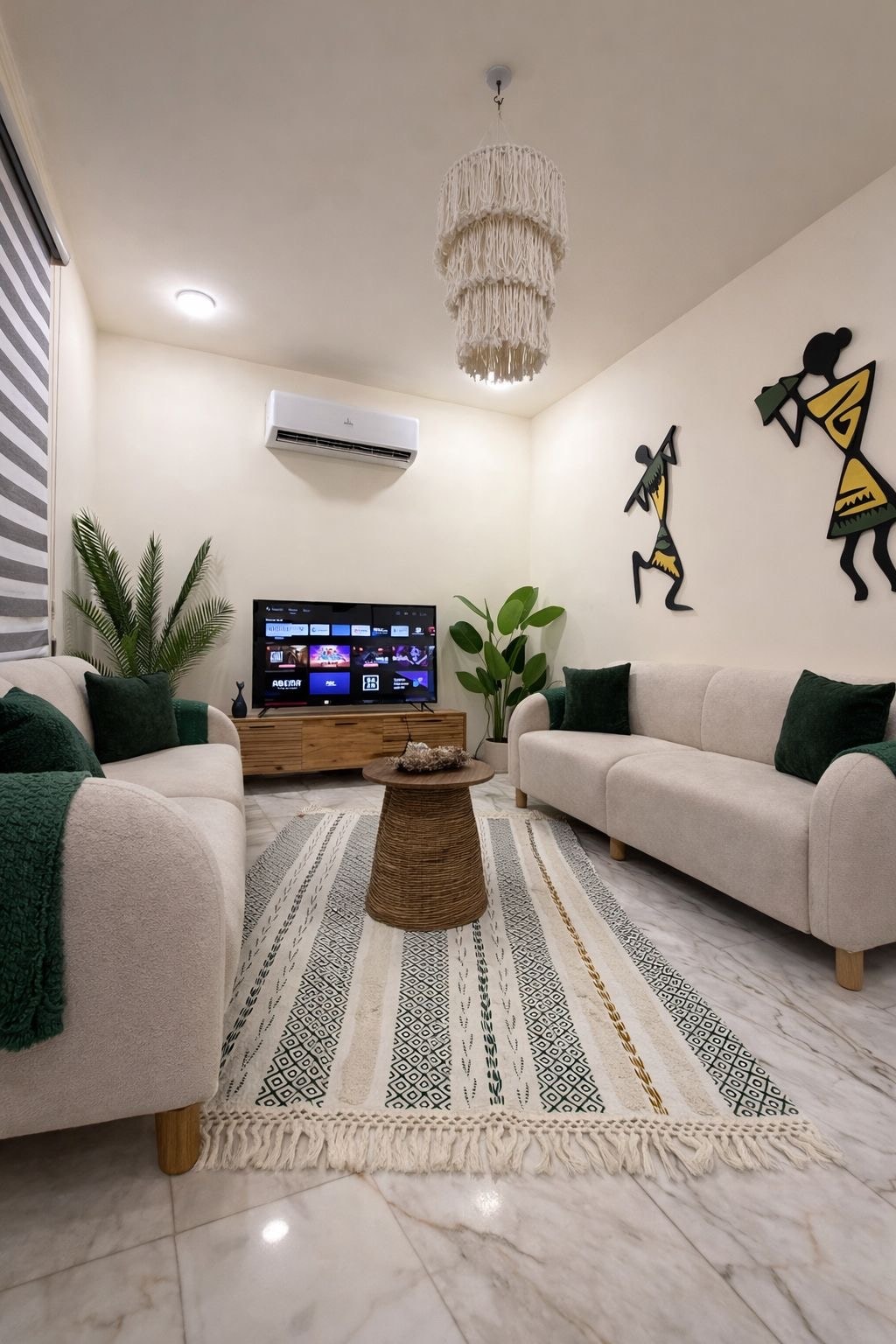 Stay in a fun, cozy Bohemian 1BR in the heart of Karada, Baghdad 🌿✨ Chill in a stylish green space with a comfy salon, 2 smart TVs, and a super comfy bed. Cook, dine, or sip coffee on the balcony. Everything is just steps away—shops, malls, and more. Perfect for relaxing, exploring, and feeling at home!