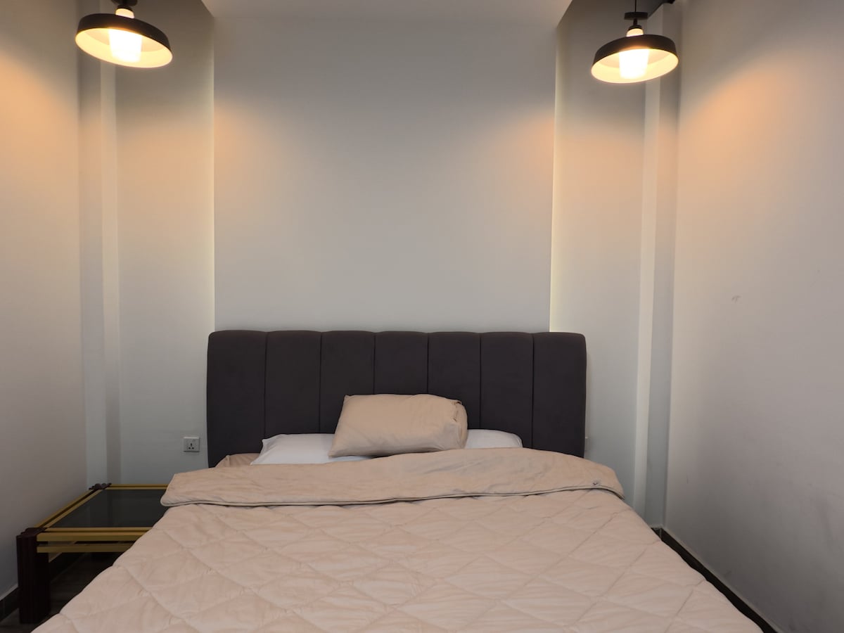 Forget your worries in this spacious and serene space consisting of 1 double bed and 2 single beds. inside the compound a super market ,laundry , bakery . Full air conditioning and 24/7 electricity