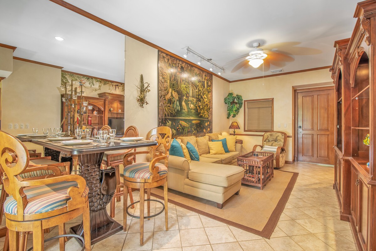 Veranda Paradise is a 2 bedroom 2 bathroom condo located in Los Sueños one of the best communities in Costa Rica. You will be greeted with Spanish architecture and a very cozy decored place with hand painted bird crafts across the condo all planned out to get your vacation going! You will have 2 terraces, a beautiful garden view, fully equipped kitchen, WIFI and smart TV's in all rooms. There are 5 pools with Jacuzzis to choose from, BBQ, a Gym with A/C, Beach club access, marina, golf and more