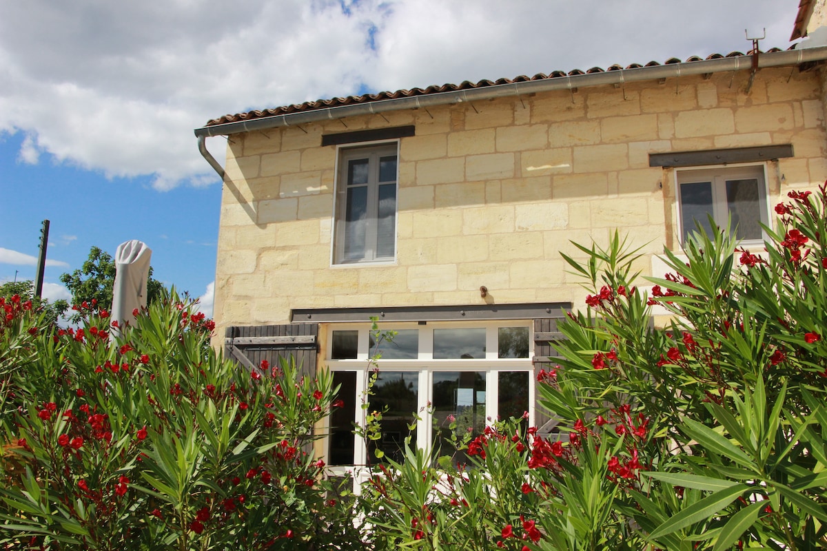Bonjour, Je vous accueille chez moi, dans une charmante dépendance de la maison, pour un séjour au cœur des vignes dans le village de Grézillac, à 15 minutes de Saint Émilion. Le logis se compose d’un grand salon, d’une cuisine, d’une chambre avec baignoire et d’un jardin. Idéalement située, en plus des paysages viticoles vous pourrez vous rendre facilement à Bordeaux, sur le bassin d’arcachon ou en Dordogne. A très vite !