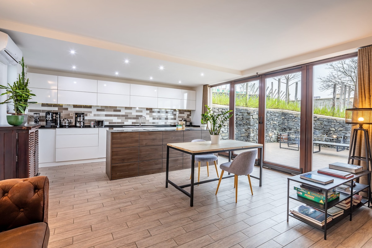 Στην προάστια πόλη του Βέσπρεμ, 8 λεπτά με το αυτοκίνητο από το κέντρο, προσφέρουμε τα κομψά διαμερίσματά μας σε μια νεόδμητη πολυκατοικία. Δωρεάν πάρκινγκ στην αυλή. Σε αυτό το διαμέρισμα υπάρχει επίσης μια υπέρυθρη σάουνα για τους επισκέπτες. Υπάρχει ένα μεγάλο διπλό κρεβάτι στην κρεβατοκάμαρα και ένας καναπές-κρεβάτι στο σαλόνι. Ιδανικό για 2 ενήλικες + 2 παιδιά. Στην αυλή υπάρχει θερμαινόμενο τζακούζι, το οποίο μπορούν να χρησιμοποιούν απεριόριστα οι επισκέπτες και των τριών διαμερισμάτων μας.