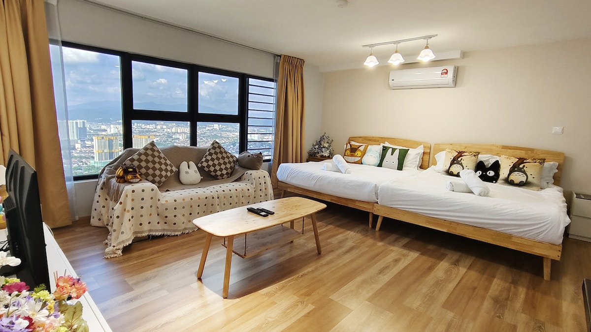 A cosy duplex on the highest floor of the building (Level 21), with a queen bed and a 3-seatersofa. Suitable for both short- and long-term stays. The building is in De Centrum Mall, with shops such as Super7 (supermarket), Tealive, Mr. DIY, SPP Bookstore and 7-Eleven among others, and facilities like launderettes and a clinic (Poliklinik MyMedik). •Check in time: from 3PM •Check out time: 12PM