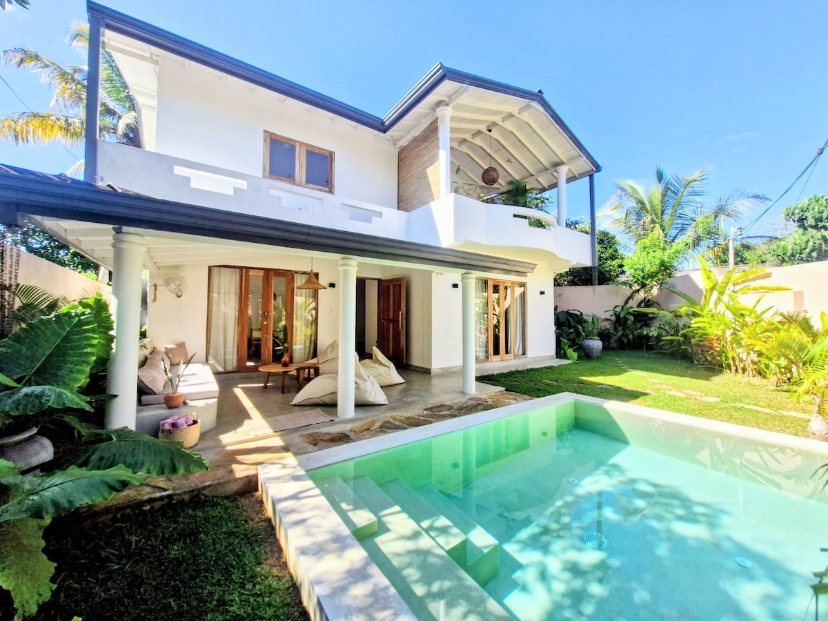 Ιδιωτική πολυτελής βίλα και πισίνα, κλιματισμός, ανεμιστήρες, γεννήτρια, χώρος εργασίας Εύκολη πρόσβαση σε όλα όσα έχει να προσφέρει η Hikkaduwa Δωρεάν WiFi υψηλής ταχύτητας, καθαρισμός. Καλωδιακή τηλεόραση Φιλοξενεί 6 άτομα + μωρό Επιλογή ιδιωτικού σεφ 2 υπνοδωμάτια με κρεβάτι super king size, 1 υπνοδωμάτιο με κρεβάτι king size, 3 ιδιωτικά μπάνια με ντους υψηλής πίεσης Ευρύχωρο εσωτερικό & σκιερή βεράντα εξωτερικό σαλόνι Μεγάλος ηλιόλουστος τροπικός περιφραγμένος κήπος Υποστηριζόμενη διαμονή με σεφ/διαχειριστή βίλας και οδηγό σε ετοιμότητα Καθαρισμός κάθε 2 ημέρες, κλινοσκεπάσματα/πετσέτες Ήρεμη γειτονιά 5 λεπτά από την παραλία Μεταφορά από/προς το αεροδρόμιο/περιηγήσεις.