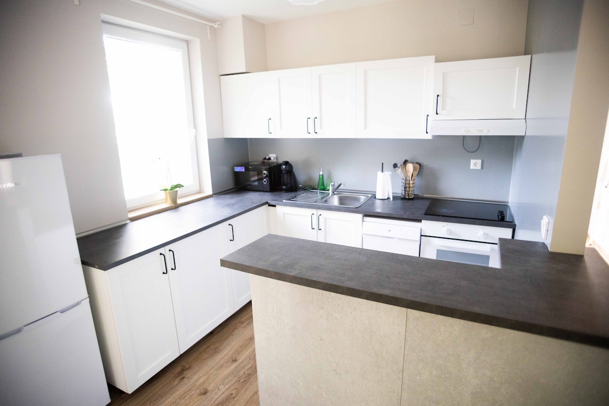 Στην προάστια πόλη του Βέσπρεμ, 8 λεπτά με το αυτοκίνητο από το κέντρο, προσφέρουμε τα κομψά διαμερίσματά μας σε μια νεόδμητη πολυκατοικία. Δωρεάν πάρκινγκ στην αυλή. Σε αυτό το διαμέρισμα υπάρχει επίσης μια υπέρυθρη σάουνα για τους επισκέπτες. Υπάρχει ένα μεγάλο διπλό κρεβάτι στην κρεβατοκάμαρα και ένας καναπές-κρεβάτι στο σαλόνι. Ιδανικό για 2 ενήλικες + 2 παιδιά. Στην αυλή υπάρχει θερμαινόμενο τζακούζι, το οποίο μπορούν να χρησιμοποιούν απεριόριστα οι επισκέπτες και των τριών διαμερισμάτων μας.