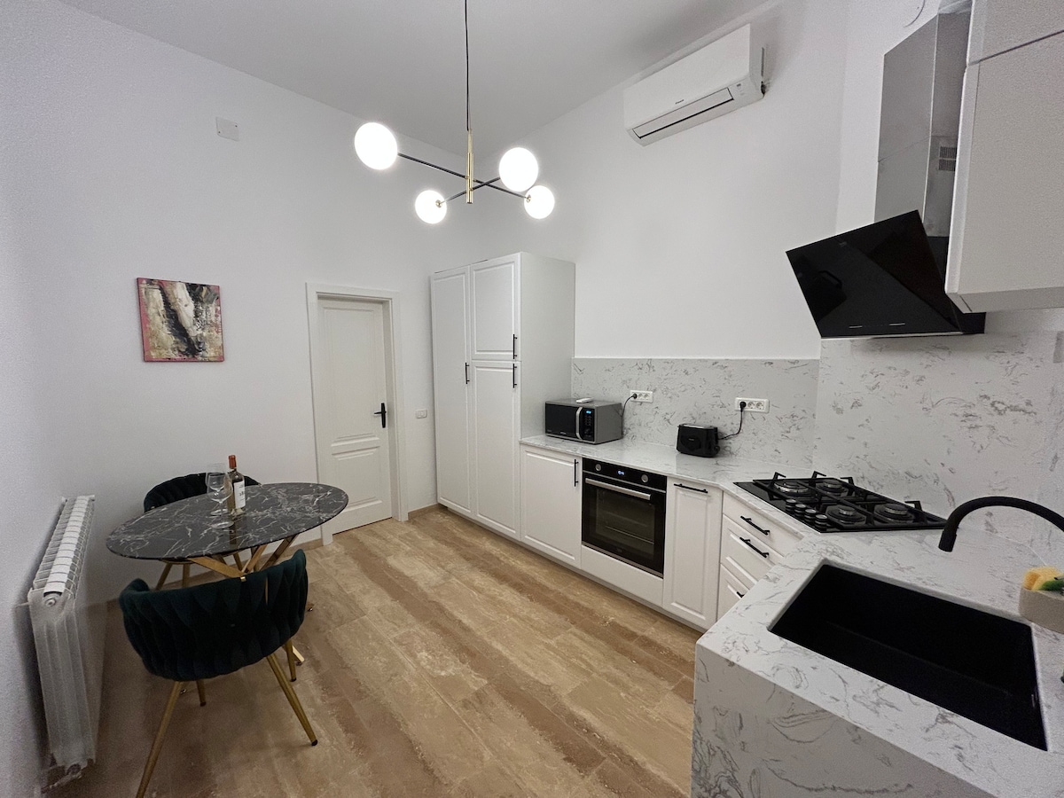 Απολαύστε μια κορυφαία εμπειρία σε ένα μοντέρνο διαμέρισμα, προσεκτικά σχεδιασμένο μέχρι την παραμικρή λεπτομέρεια. Βρίσκεται σε μια ήσυχη περιοχή αλλά κοντά στα κύρια αξιοθέατα της πόλης, ο χώρος συνδυάζει τον σύγχρονο σχεδιασμό με τη ζεστή ατμόσφαιρα ενός "σπιτιού μακριά από το σπίτι". Ένα μοντέρνο και άνετο σαλόνι, ιδανικό για χαλαρωτικά βράδια. Μια κουζίνα ανοιχτού χώρου, πλήρως εξοπλισμένη με μια κομψή τραπεζαρία και όλες τις συσκευές που χρειάζεστε για μια ξέγνοιαστη διαμονή. Περιλαμβάνει επίσης μια θεαματική βεράντα.