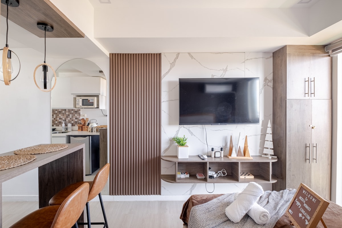 Καλωσορίσατε στο The Meydan Suites at Azure North, ένα στούντιο εμπνευσμένο από το Japandi στο Σαν Φερνάντο της Παμπάνγκα. Μόλις 1,5 ώρα από τη Μανίλα, το ευρύχωρο στούντιο 2 υπνοδωματίων διαθέτει πλήρως εξοπλισμένη κουζίνα, ένα μπάνιο και ιδιωτικό μπαλκόνι στην ήσυχη πλευρά του Azure. Με 200 ₱ ανά επισκέπτη ανά βάρδια, μπορείτε να απολαύσετε ανέσεις σε στυλ θέρετρου, όπως την πισίνα με κύματα, την πισίνα στην παραλία και τις εγκαταστάσεις αναψυχής. Είναι το ιδανικό καταφύγιο για ζευγάρια, οικογένειες ή παρέες.