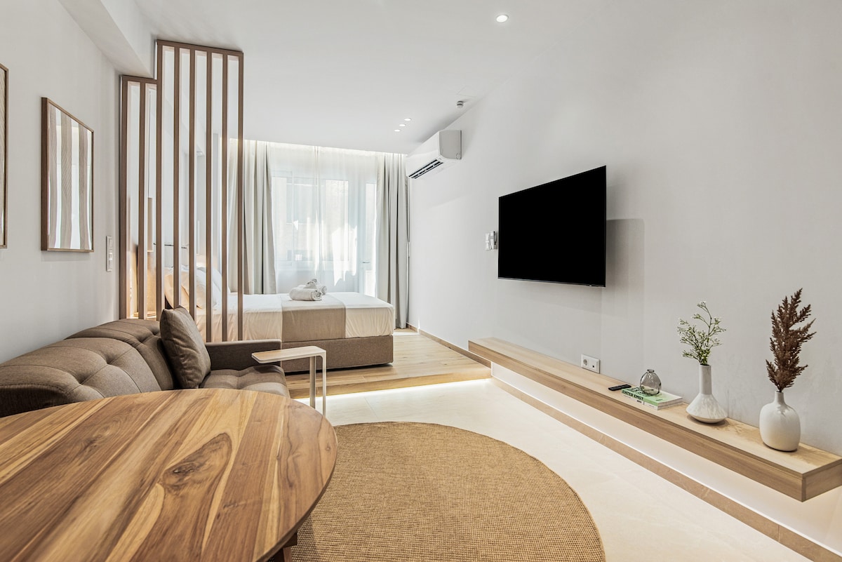 Wake up in a Monastiraki hideaway where simplicity meets soul. Sunlight spills across warm, minimalist spaces, while hidden corners invite you to pause and breathe. Step outside and lose yourself in labyrinthine streets, bustling markets, and cafés where locals linger. Wake up to the heartbeat of Athens and let its vibrant streets, markets, and evening life carry you through an unforgettable day. A stay here feels like a secret passage into Athens itself.