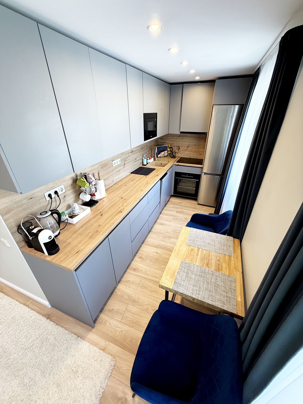 The apartment is a modern living space that is warm and welcoming. Totally refurbished to high standards with many stylish features. The apartment offers you an environment that feels like home - secure, bright and friendly. The apartment is located centrally in Rezekne with all amenities nearby. Being on the third floor, the apartment doesn't suffer from road noise but allows great views of the busy city centre. The theatre, restaurants and university are all within easy walking distance.