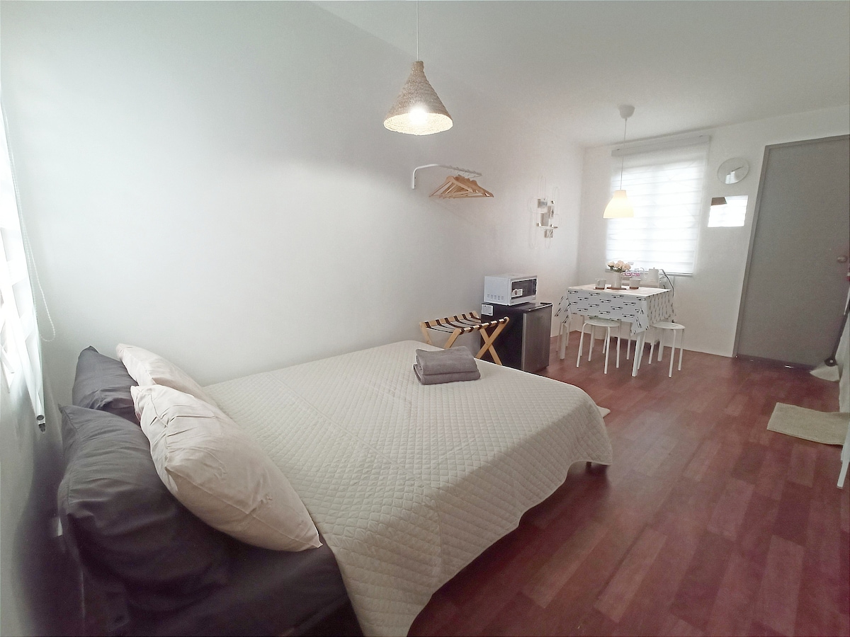 Βρείτε την τέλεια απόδραση στην ελεύθερη ζώνη του Κλαρκ! Το ευρύχωρο στούντιο 40 τ.μ. μας, κατάλληλο για κατοικίδια, είναι ένα γαλήνιο καταφύγιο. Βρίσκεται σε μια ήσυχη, χαμηλή πολυκατοικία με ξεχωριστή ατμόσφαιρα εμπνευσμένη από την Κορέα, λίγα βήματα από το Hilton. Κοιμούνται άνετα 4 άτομα με ένα διπλό κρεβάτι και έναν καναπέ-κρεβάτι. Απολαύστε την ευκολία μιας πλήρους κουζίνας, ενός πλυντηρίου στο κατάλυμα και των απαραίτητων παροχών για μια ξέγνοιαστη διαμονή. Απολαμβάνετε την περιπέτεια σε λίγα λεπτά: εξερευνήστε το καταπράσινο Clark Parade Grounds ή κάντε μια βουτιά στο Aqua Planet!