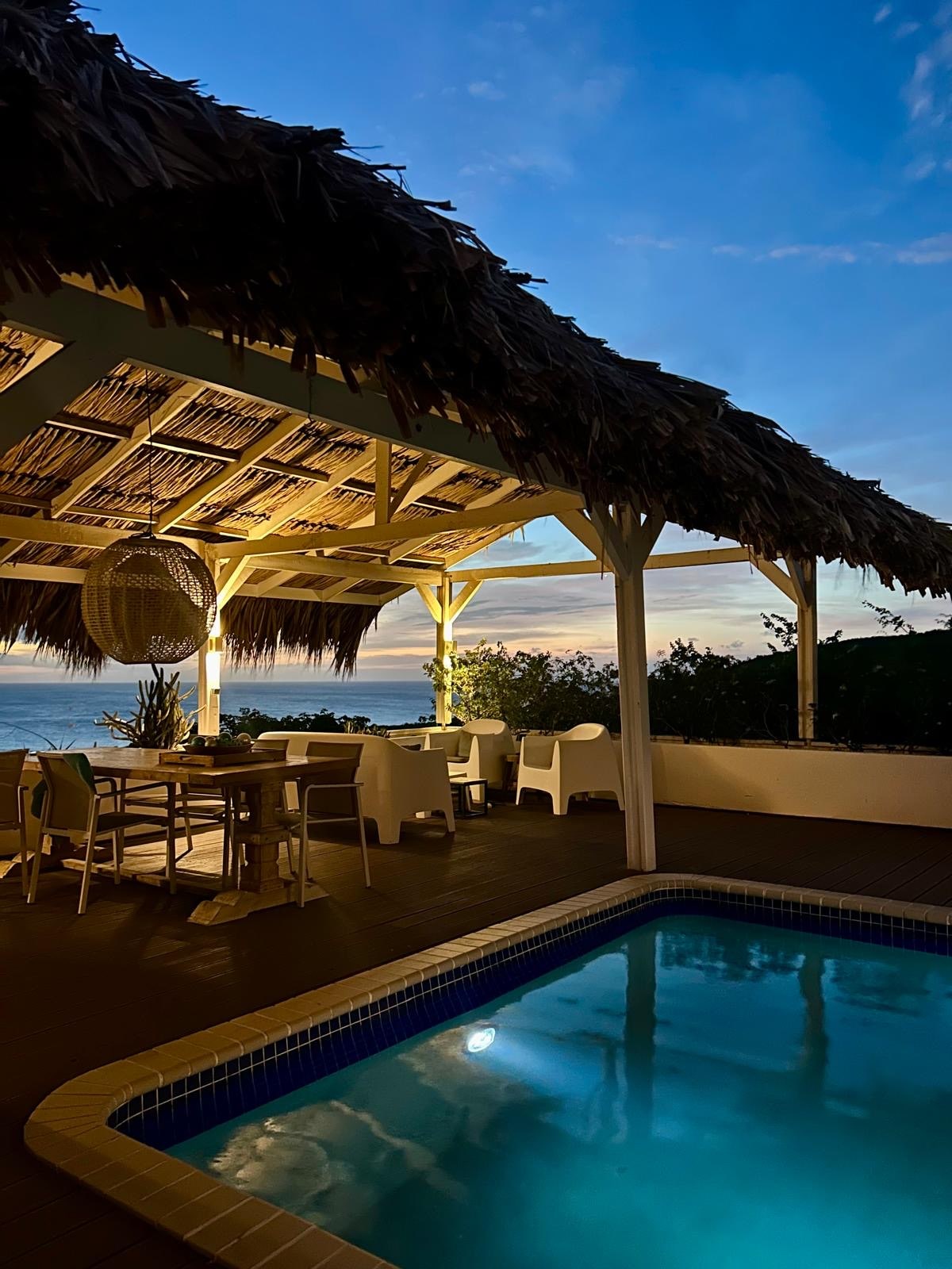 Brand new & unique 3D Concrete bungalow with an own cave and access to the ocean. From the bungalow you walk to our cave, from the cave you can jump straight in the light blue ocean. Watch leaping tuna, dolphins and sometimes whales. Snorkel around the cave to see coral. Having a beer on the bar chairs in the swimmingpool. Or what you think about a nice cocktail in the bubbling jacuzzi on the cliff overlooking the Caribbean Sea? We also provide a outside kitchen area with a BBQ on gas.