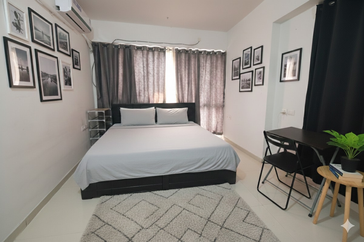 Απολαύστε άνεση και ευκολία σε αυτό το κομψό στούντιο στο BKC. Βρίσκεται σε μια κλειστή κοινότητα με 24ωρη ασφάλεια, πρόσβαση με ασανσέρ και δωρεάν πάρκινγκ, ιδανικό για επαγγελματικά ταξίδια ή σύντομες αποδράσεις στην πόλη. Απολαύστε έναν φωτεινό, μοντέρνο χώρο με πλήρως εξοπλισμένη κουζίνα, γρήγορο wifi, κλιματισμό και check-in χωρίς παρουσία οικοδεσπότη. Χαλαρώστε δίπλα στο παράθυρο με θέα στον ορίζοντα ή απολαύστε την κοινόχρηστη πισίνα και το γυμναστήριο. Ιδανικό για μεμονωμένους ταξιδιώτες, ζευγάρια ή εργαζόμενους εξ αποστάσεως.