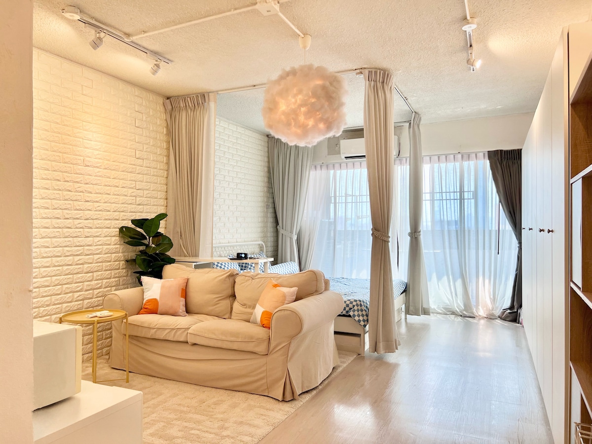 曼谷市中心轻奢公寓/10分钟到轻轨站/贵妇商圈/购物天堂/舒适一房一厅套房/巴士东站