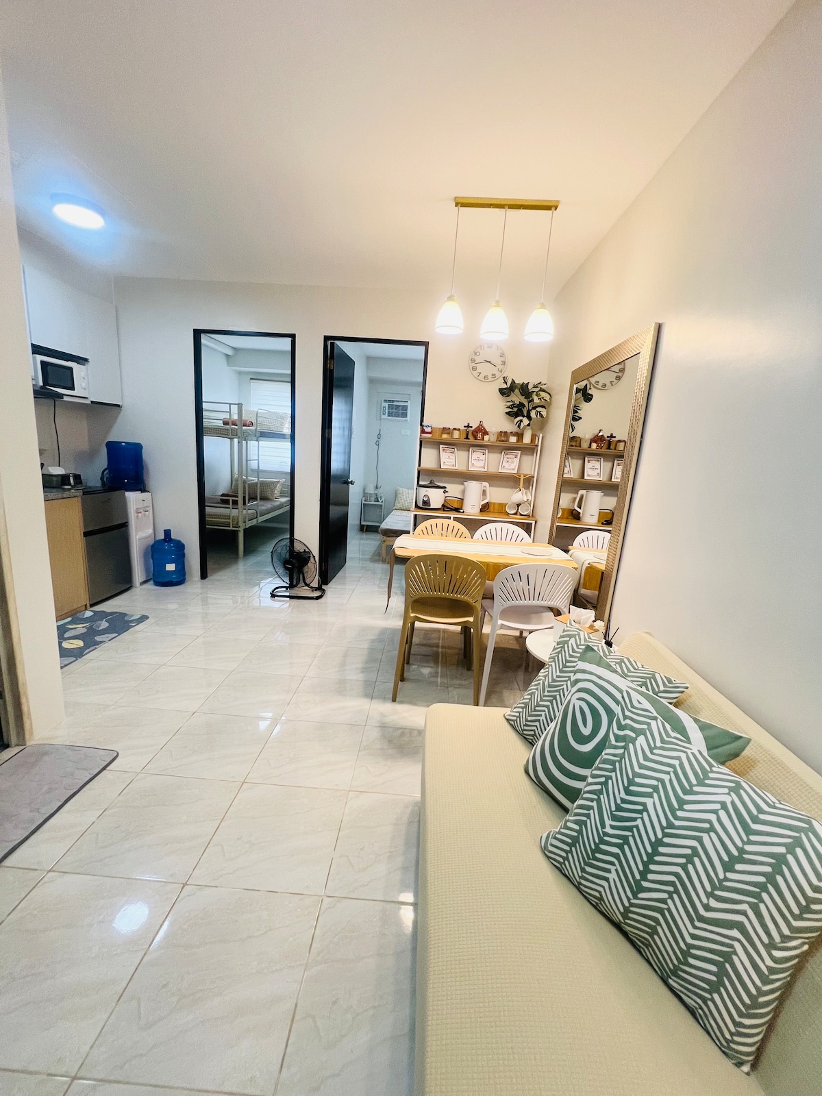 Ένα κατάλυμα με όλες τις ανέσεις, το διαμέρισμα βρίσκεται στο A.S. Fortuna, Banilad, Mandaue, Cebu. Το κατάλυμα βρίσκεται στον 19ο όροφο και έχει θέα στο βουνό. Ο χώρος διαβίωσης περιλαμβάνει μια καλή έξυπνη τηλεόραση 43 ιντσών και σύνδεση Wi-Fi, καθιστώντας τον κατάλληλο για όσους εργάζονται από το σπίτι ή για όσους απλά θέλουν να χαλαρώσουν και να παρακολουθήσουν τις αγαπημένες σειρές/ταινίες. Διαθέτουμε μια επιπλωμένη κουζίνα με ένα πλήρους μεγέθους ψυγείο και βασικά σκεύη που μπορείτε να χρησιμοποιήσετε σε περίπτωση που αποφασίσετε να μαγειρέψετε.