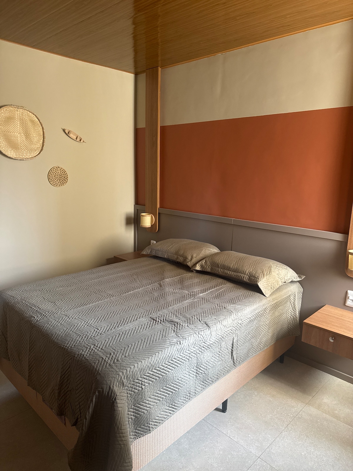 Esqueça suas preocupações neste espaço amplo e tranquilo. Acomoda perfeitamente um casal, com uma cama king extremamente confortável.