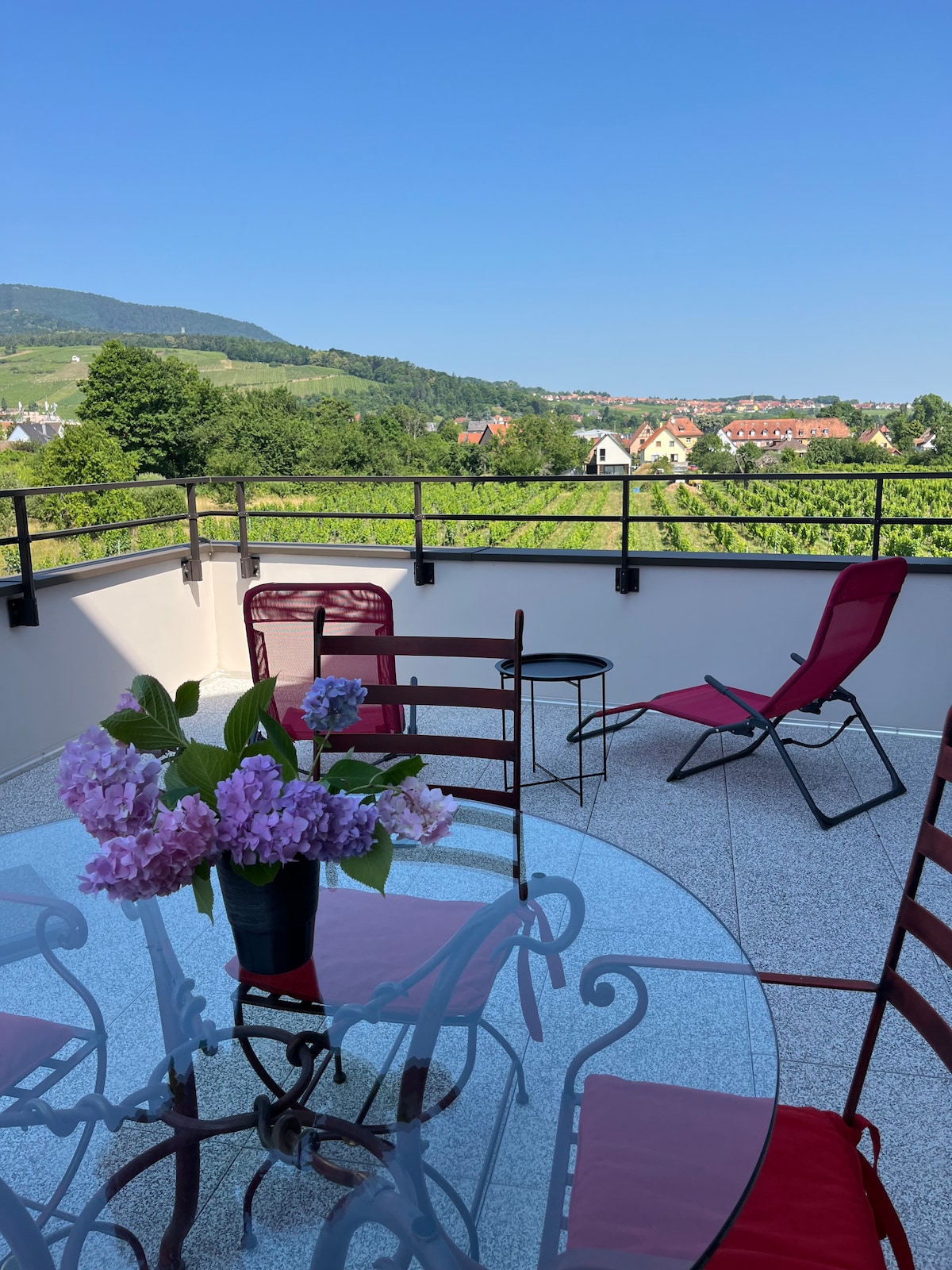 Το κατάλυμά μας έχει εκπληκτική θέα στους αμπελώνες και τα κτίρια που είναι χαρακτηριστικά της Αλσατίας. Αποτελείται από: - Δύο υπνοδωμάτια (με κρεβάτια 160x200), - ένα μεγάλο ημι-ανοικτό καθιστικό με καναπέ-κρεβάτι και ένα μικρό μπαλκόνι, - μια εξοπλισμένη κουζίνα (φούρνος, φούρνος μικροκυμάτων, καφετιέρα, βραστήρας, τοστιέρα, πλυντήριο πιάτων, πλυντήριο ρούχων, μεγάλο ψυγείο/καταψύκτη) με μεγάλο χώρο τραπεζαρίας, - ένα μπάνιο, - ξεχωριστή τουαλέτα, Μπορούμε να παρέχουμε εξοπλισμό για μωρά (δωρεάν)