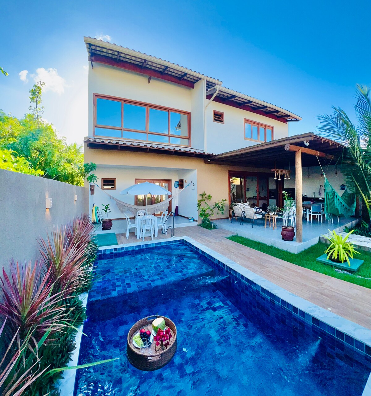 Χαλαρώστε με όλη την οικογένεια ή τους φίλους σας σε αυτό το ήσυχο κατάλυμα στην παραλία Tabuba/Alagoas. Σπίτι με πισίνα, κήπο, μπάρμπεκιου, ανακαινισμένο, όμορφα διακοσμημένο 200 μέτρα από την παραλία, με 3 κοιτώνες που είναι 1 σουίτα με υπέρδιπλο κρεβάτι, καθώς και 2 υπνοδωμάτια με διπλό κρεβάτι, ενσωματωμένη κουζίνα με σαλόνι, καθώς και 1 εξωτερική κουζίνα. Κλιματιστικό τριών υπνοδωματίων, καλός εξαερισμός, μεγάλο κοινωνικό μπάνιο, 2 πλήρη εξωτερικά μπάνια, ντους. Σημείωση: Έχουμε ζευγάρι στρωμάτων και μονά, αν είναι απαραίτητο.