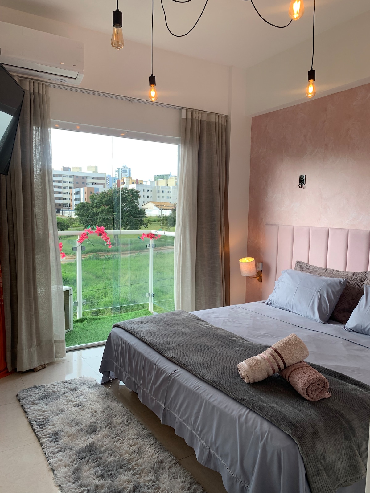 Ευρύχωρο και στρατηγικό διαμέρισμα στη Vitória da Conquista. Ιδανικό για οικογένειες ή παρέες που αναζητούν πρακτικότητα. Σημαντικότερα σημεία: • 3 Υπνοδωμάτια (1 σουίτα). • Τοποθεσία: 2,2 χλμ. από το εμπορικό κέντρο Conquista Sul και 3,8 χλμ. από το Boulevard. • Θέα: Σαλόνι με άμεση θέα στην πισίνα. • Γκαράζ: 1 ιδιωτικός χώρος στάθμευσης μέσα στην πολυκατοικία. • Πρόσβαση: 3ος όροφος (πρόσβαση μέσω σκάλας). Παροχές: Γρήγορο Wi-Fi, πλήρης κουζίνα και αεριζόμενο περιβάλλον. Κοντά σε όλα: εμπορικά κέντρα, αγορές και φαρμακεία. Κάντε κράτηση τώρα!