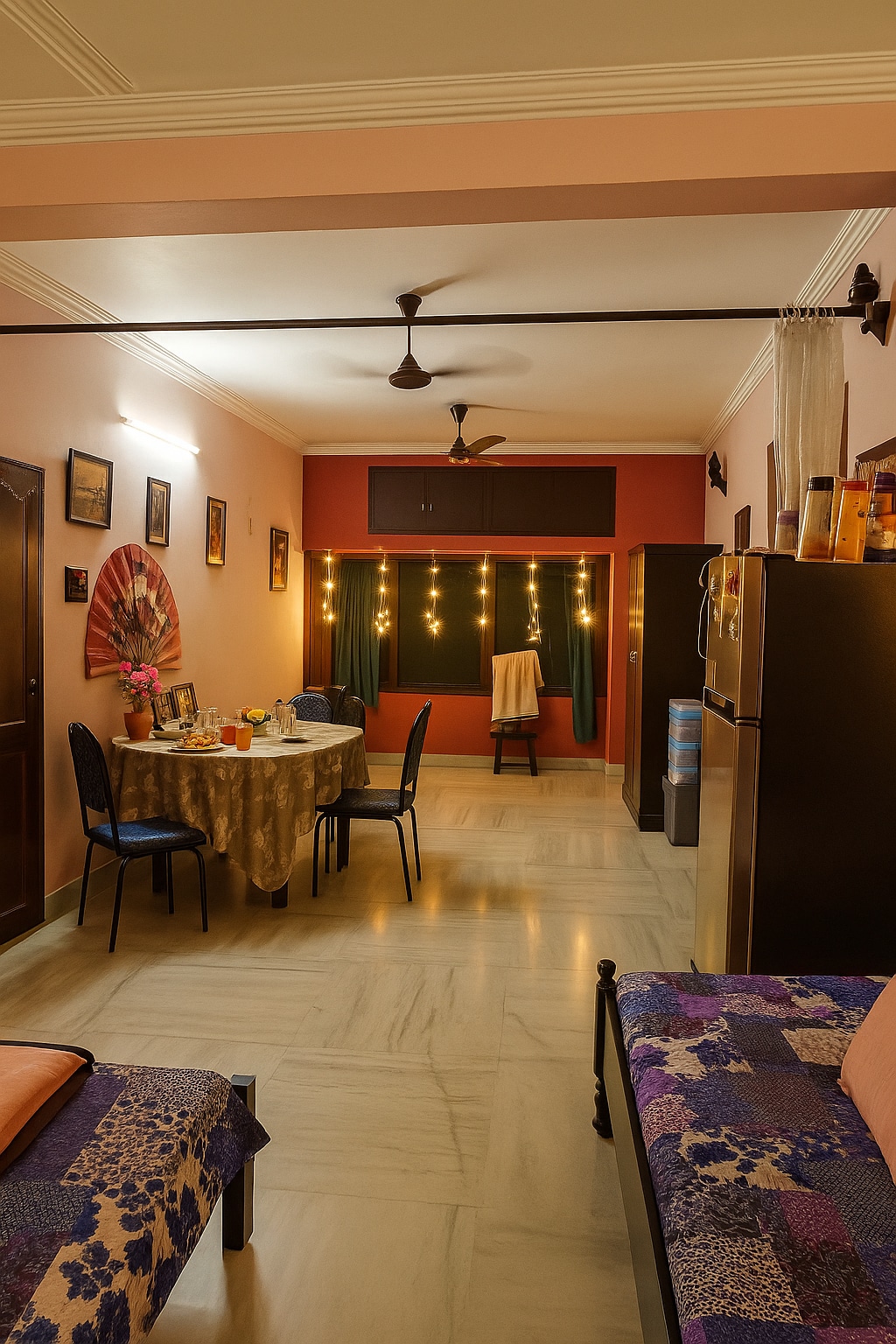 Αφήστε πίσω κάθε έγνοια με αυτόν τον ευρύχωρο και γαλήνιο χώρο. Μια vintage κατοικία ενός υπνοδωματίου στο ισόγειο σε ένα διώροφο σπίτι με ιδιωτικό μπάνιο, κουζίνα, τραπεζαρία και μεγάλο μπαλκόνι. Κατάλληλο για γυναίκες που ταξιδεύουν μόνες, επαγγελματίες, τουρίστες, φοιτητές, παντρεμένα ή άγαμα ζευγάρια και ΛΟΑΤΚ επισκέπτες. Εξαιρετική τοποθεσία, λίγο πιο πάνω στον δρόμο από το εμπορικό κέντρο South City, το Πανεπιστήμιο Jadavpur, το νοσοκομείο AMRI και πολλά άλλα δημοφιλή μέρη με καλή διαθεσιμότητα μεταφοράς.