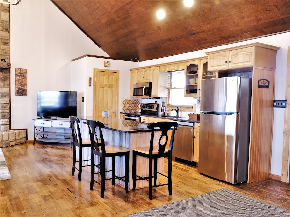 Καλωσορίσατε στο άνετο ξυλόσπιτό μας στη γραφική φάρμα μας των 146 στρεμμάτων! Αποδράστε σε ένα όμορφα ανακαινισμένο ξυλόσπιτο που βρίσκεται μέσα στους κυματιστούς λόφους ενός αγροκτήματος με βοοειδή. Διαθέτει πανοραμική θέα από τις μπροστινές και πίσω βεράντες. Είτε θέλετε απλώς να χαλαρώσετε και να απολαύσετε το γραφικό, γαλήνιο, εξοχικό περιβάλλον είτε να εξερευνήσετε κοντινά αξιοθέατα, αυτό το ανακαινισμένο ξυλόσπιτο του 2023 είναι το τέλειο καταφύγιο για εσάς. Βολικά τοποθετημένο μόλις 10 λεπτά από το Scottsville, 15 λεπτά από το Bowling Green και 15 λεπτά από τη λίμνη Barren River.