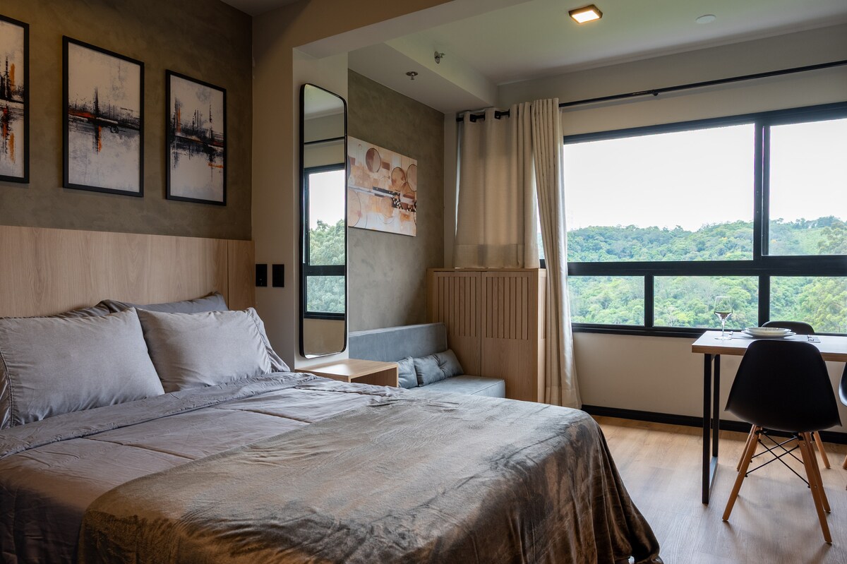 Απολαύστε μια αξέχαστη διαμονή σε αυτό το πολυτελές διαμέρισμα, που βρίσκεται στο διάσημο Selenita Condominium Χαρακτηριστικά διαμερίσματος: - 1 ευρύχωρο δωμάτιο με ένα διπλό κρεβάτι και ένα βοηθητικό κρεβάτι. - Κλιματισμό. - Claro TV, Netflix, Max, Telecine και Wi-Fi υψηλής ταχύτητας. - Πλήρως εξοπλισμένη κουζίνα με συσκευές. Παροχές: - Πισίνα - Γυμναστήριο γυμναστικής. - Πλυντήριο Mercadinho ΤΟΠΟΘΕΣΙΑ: Το Bethaville είναι μία από τις πιο αριστοκρατικές περιοχές της πόλης Barueri με την καλύτερη τοποθεσία.