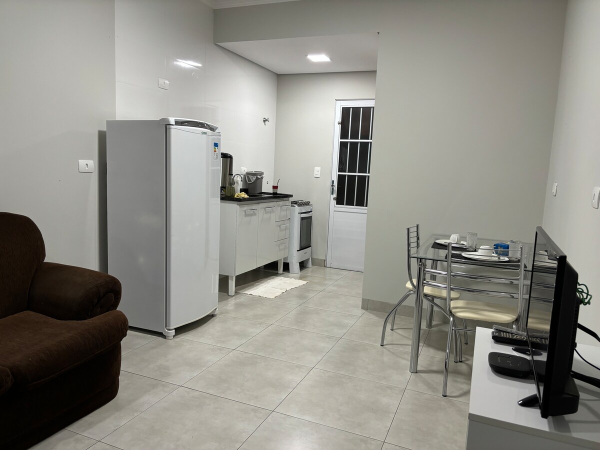 Abrace a simplicidade neste lugar tranquilo e bem-localizado. Ideal para viagens curtas, você ficará perto de tudo, mercado, conveniência, restaurante, feira, farmácia, academia entre outros locais que facilitam seu dia a dia. Portão eletrônico e de serviço, local seguro e bem fechado. Cortinas black out para maior conforto. Ar condicionado no quarto. Fique a vontade para enviar suas dúvidas sobre a hospedagem por mensagem. *Temos a opção de check-out extendido por R$15,00 a hora adicional.