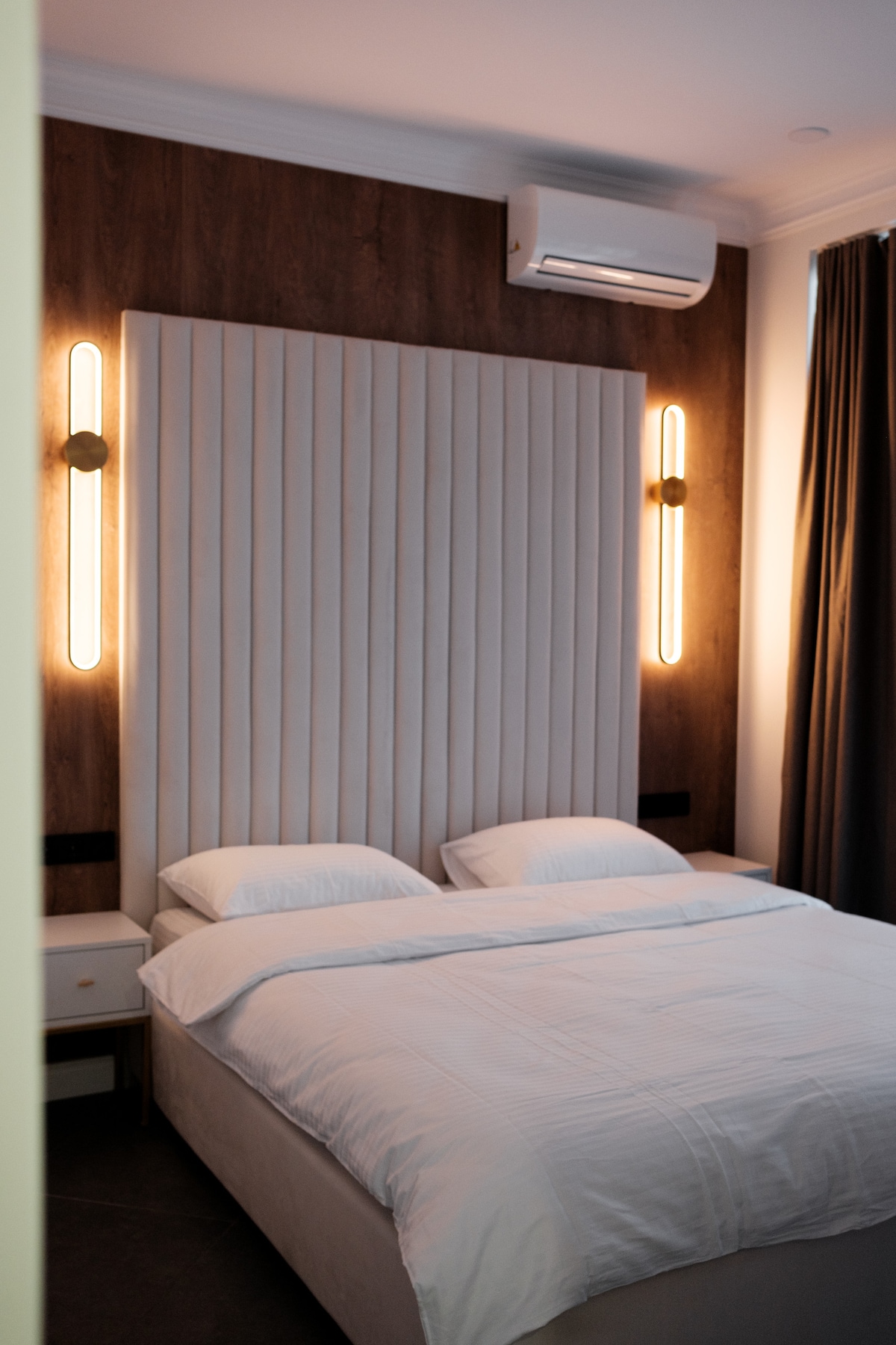 Welcome to Green Heaven – a calm, hotel-style room with balcony and access to a newly built shared drop pool surrounded by nature. Designed in soft blue tones, it’s perfect for solo travelers or couples seeking peace and comfort. Enjoy the fresh air, relax in a cozy bed, and stay connected with Wi-Fi and smart TV. While there’s no kitchen, great cafés are nearby. A quiet retreat just minutes from Batumi’s center.