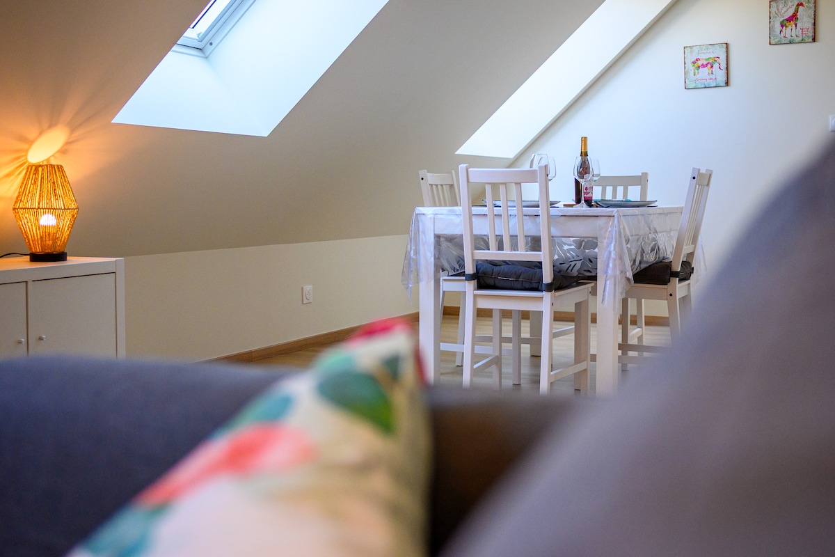 Découvrez un havre de paix à proximité des commerces et à 3 km de la sortie d'autoroute. L'appartement vous offre calme et confort que vous soyez un professionnel en déplacement ou une famille en quête d'un séjour inoubliable. Profitez d'un jardin paisible et d'un parking gratuit pour plus de commodité. Bienvenue au cœur de la ville dans un appartement de confort et de modernité.