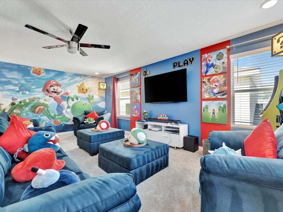 Η τέλεια ισορροπία του ΚΟΜΨΟΎ ΣΧΕΔΊΑΣΜΑΤΟΣ, ΤΗΣ ΠΟΛΥΤΕΛΟΎΣ ΆΝΕΣΗΣ και της ΑΤΈΛΕΙΩΤΗΣ ΨΥΧΑΓΩΓΊΑΣ, σε μια πανέμορφη τοποθεσία με εκπληκτική θέα στο εκτεταμένο Reunion Resort 3,5 τετραγωνικών μιλίων. Θα έχετε τη δική σας ιδιωτική πισίνα, σπα, αίθουσα παιχνιδιών STAR WARS με φλιπεράκι, κλασικά ηλεκτρονικά παιχνίδια και καραόκε, παιδικό δωμάτιο MARVEL με σωληνοειδή τσουλήθρα και διπλές κουκέτες, το τελευταίο Xbox Series S, μια τεράστια βεράντα πισίνας 2000 τετραγωνικών μέτρων, τζάκι και ακόμη και ένα ντουλάπι ΧΆΡΙ ΠΌΤΕΡ κρυμμένο κάτω από τις σκάλες, λίγα λεπτά από τη Disney.