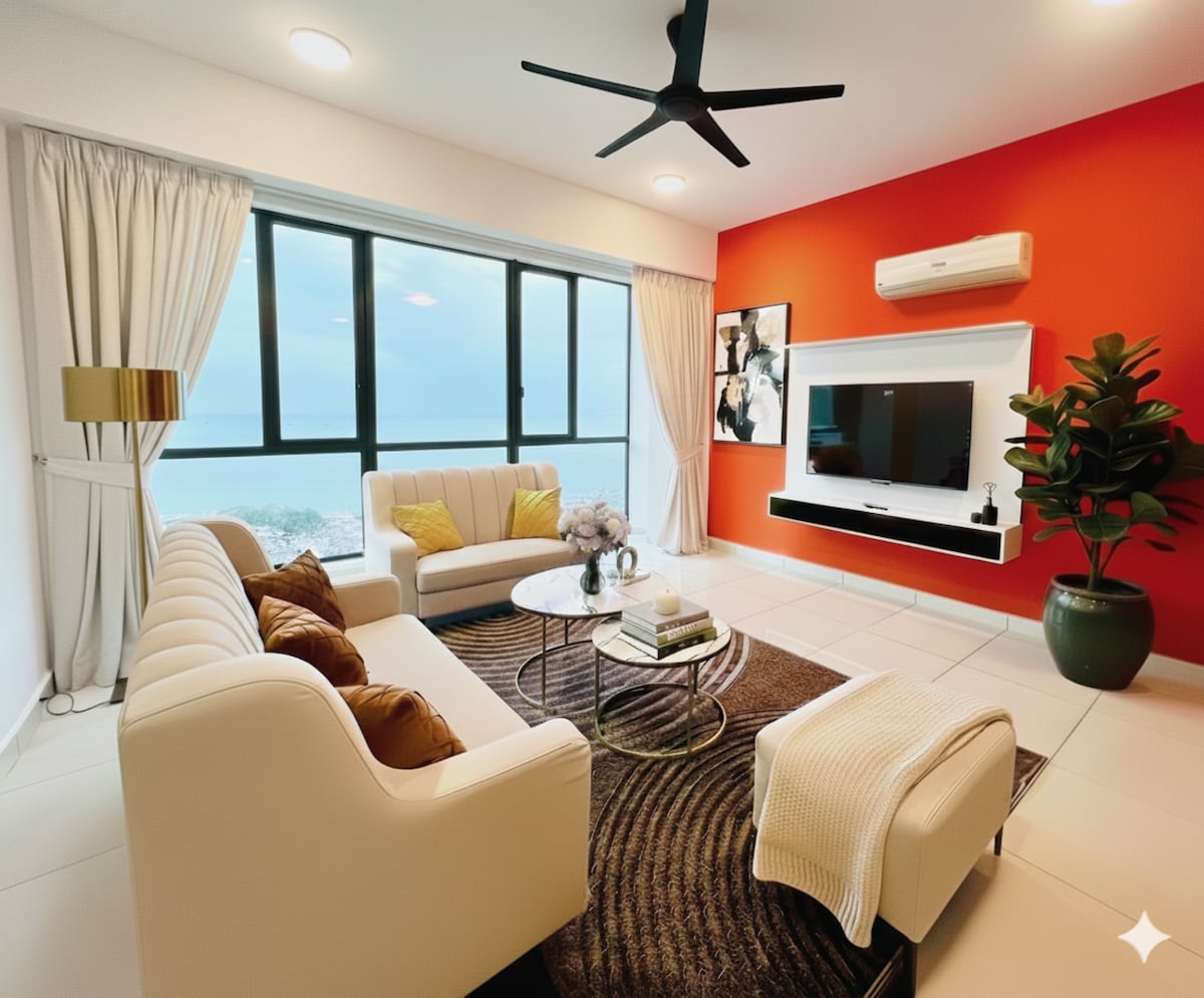 Αστικές Σουίτες από την Comfy Homestay ★ 5 αστέρων SUPERHOST ★ 3 υπνοδωμάτια με 2 τουαλέτες (θέα στην πόλη) ★ 1 ιδιωτικό πάρκινγκ στο επίπεδο 10 WiFi υψηλής ταχύτητας★ 100Mbps ★ Πλήρως κλιματιζόμενο ★ 2 λεπτά με το αυτοκίνητο από τη γέφυρα Penang. ★ 2 λεπτά με το αυτοκίνητο από το Karpal Singh Drive (Starbucks, Coffee Bean, McD, Family Mart, Karpal Singh Drive Seaview Promenade) ★ 5 λεπτά με το αυτοκίνητο από το εμπορικό κέντρο Queensbay. ★ 8 με 10 λεπτά με το αυτοκίνητο (λιγότερο από 5 χλμ.) από την προβλήτα Chew, την τέχνη του δρόμου και την παλιά πόλη που είναι Μνημείο της UNESCO. ★ 25 λεπτά με το αυτοκίνητο από το αεροδρόμιο