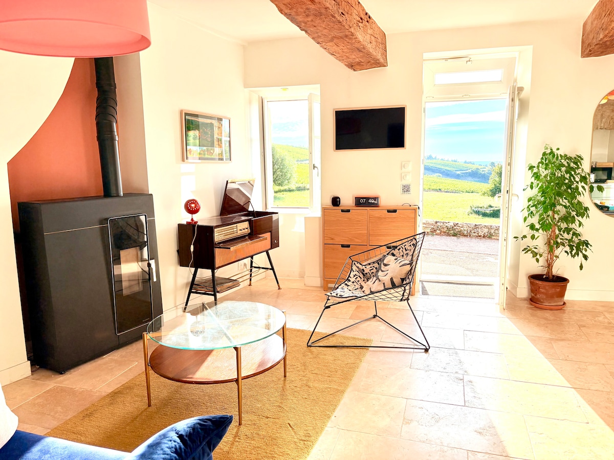 Γοητευτικό στούντιο με μπάνιο και μικρή κουζίνα για την άνεσή σας στο ισόγειο ενός ιστορικού σπιτιού με θέα στους αμπελώνες Pouilly-Fuissé. Καλώς ήρθατε σε ένα από τα παλαιότερα σπίτια του χωριού Vergisson, κάποτε το τοπικό παντοπωλείο, τώρα ανακαινισμένο σε ένα άνετο στούντιο γεμάτο χαρακτήρα για τη διαμονή σας. Βρίσκεται στο ισόγειο, η σουίτα μας, με την ξεχωριστή είσοδό της προσφέρει όλες τις απαραίτητες ανέσεις για να κάνει τη διαμονή σας ευχάριστη.